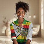 Zimbabwe Christmas Women Casual Shirt Festive Santa Palm Tree and Red Yellow Green Flag