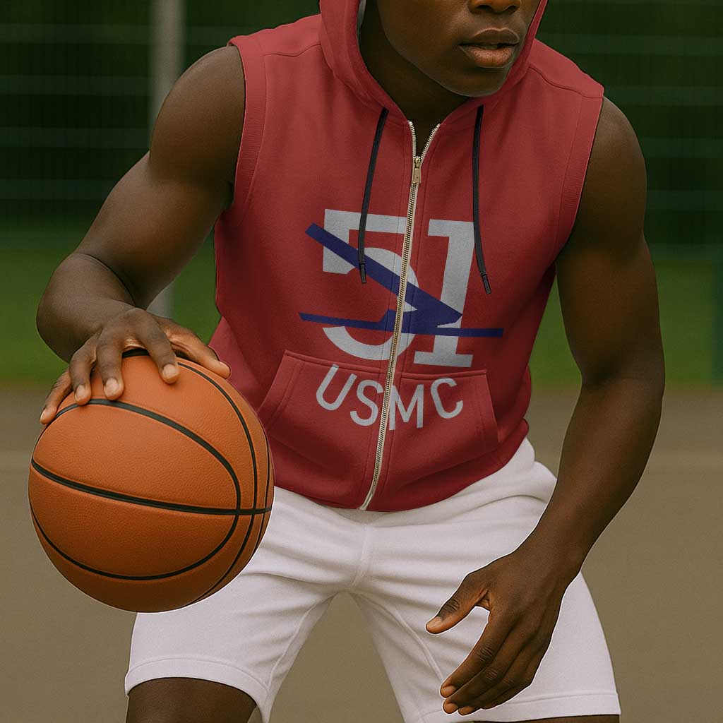 51 USMC Legacy Sleeveless Zip Hoodie Proud Montford Point Marines