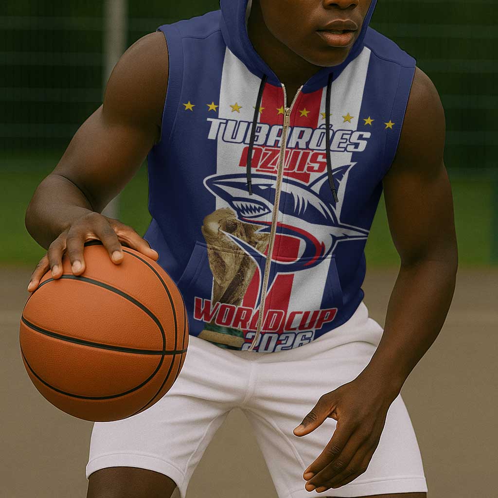 Cape Verde Football 2026 Sleeveless Zip Hoodie Tubaroes Azuis Go Champion