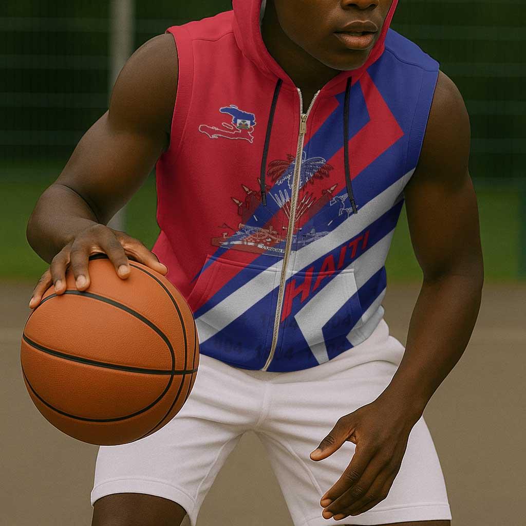 Personalised Haiti 1804 Sleeveless Zip Hoodie Coat Of Arms Simple Style