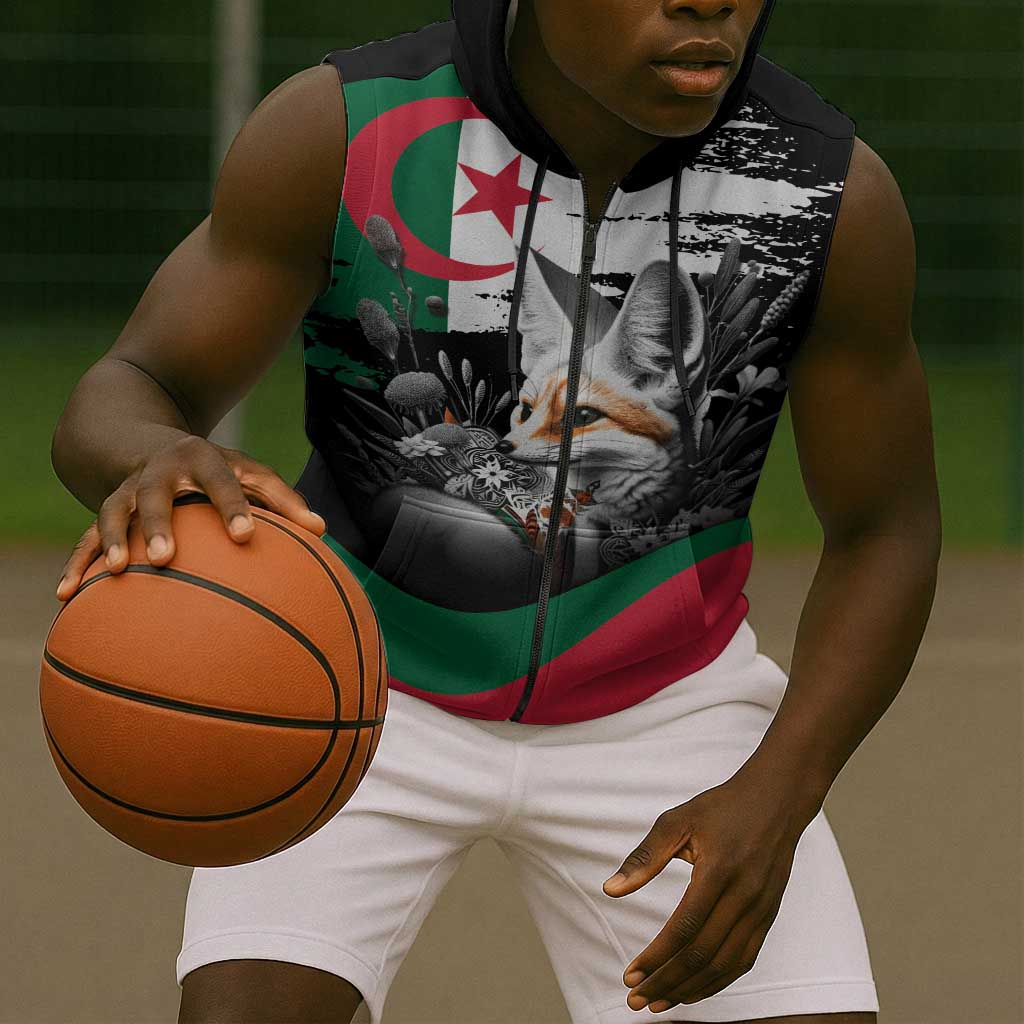 Personalized Algeria Sleeveless Zip Hoodie Algerian Flag With a Fennec Fox
