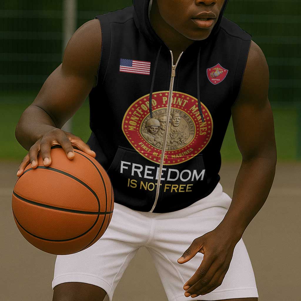 Personalized Honoring the First Black Marines Sleeveless Zip Hoodie Montford Point Heroes - Black