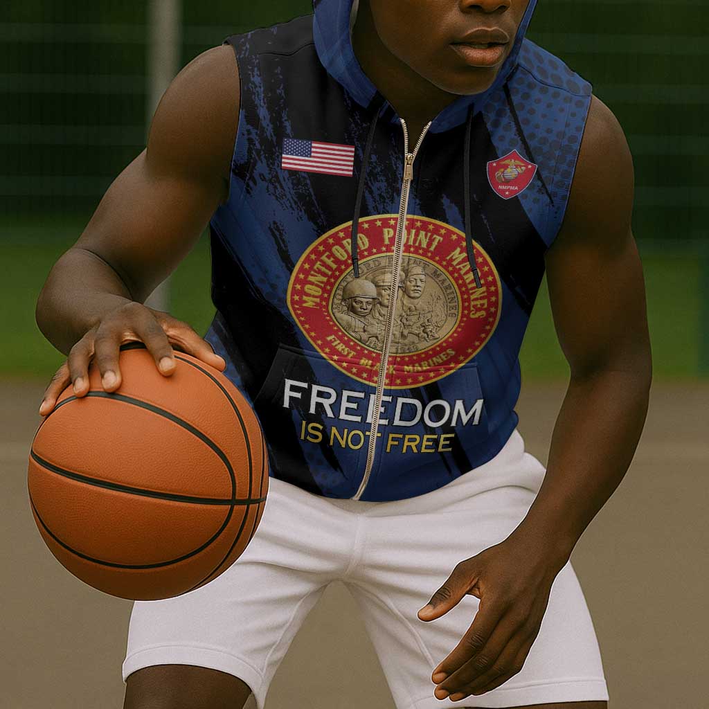 Personalized Honoring the First Black Marines Sleeveless Zip Hoodie Montford Point Heroes - Blue