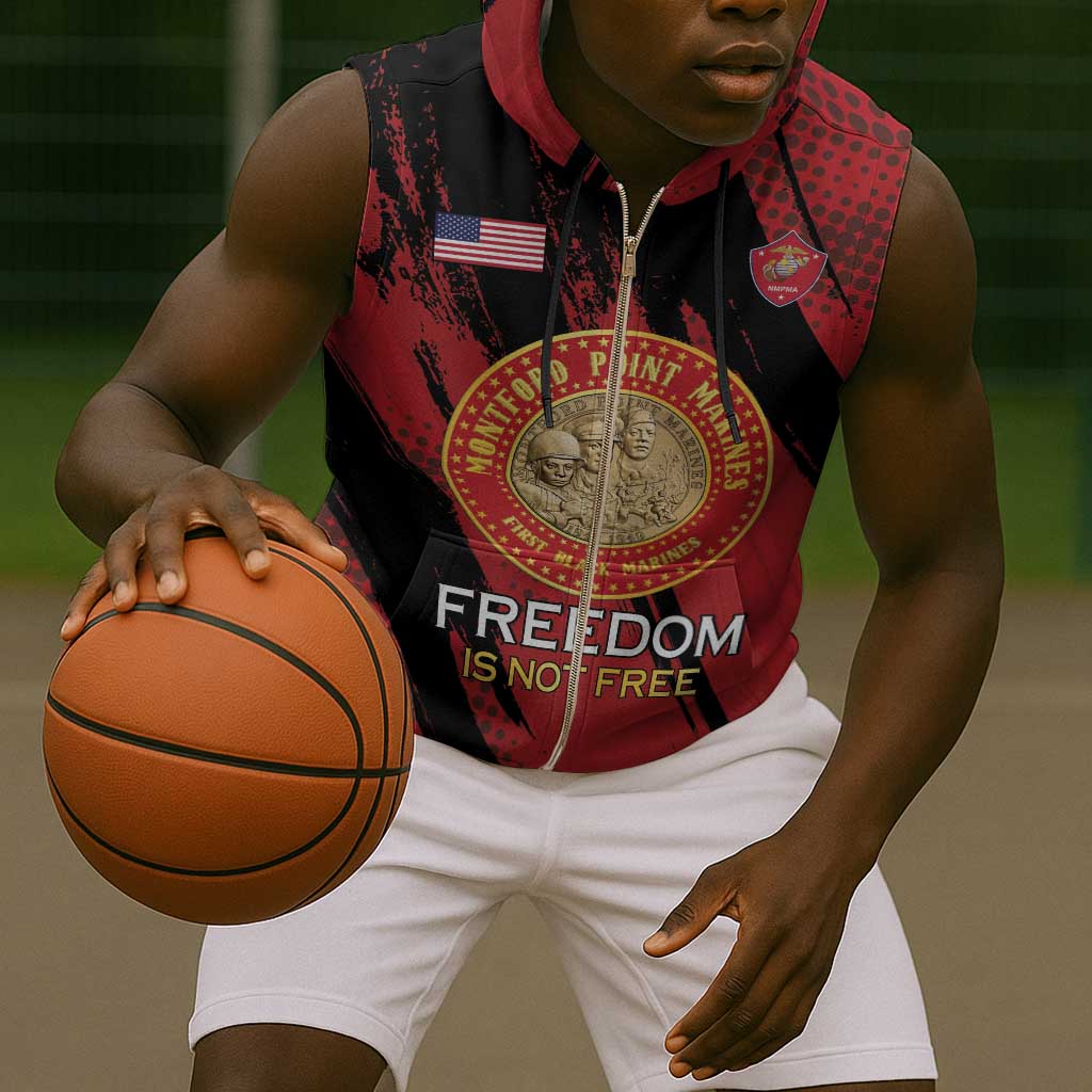 Personalized Honoring the First Black Marines Sleeveless Zip Hoodie Montford Point Heroes - Red