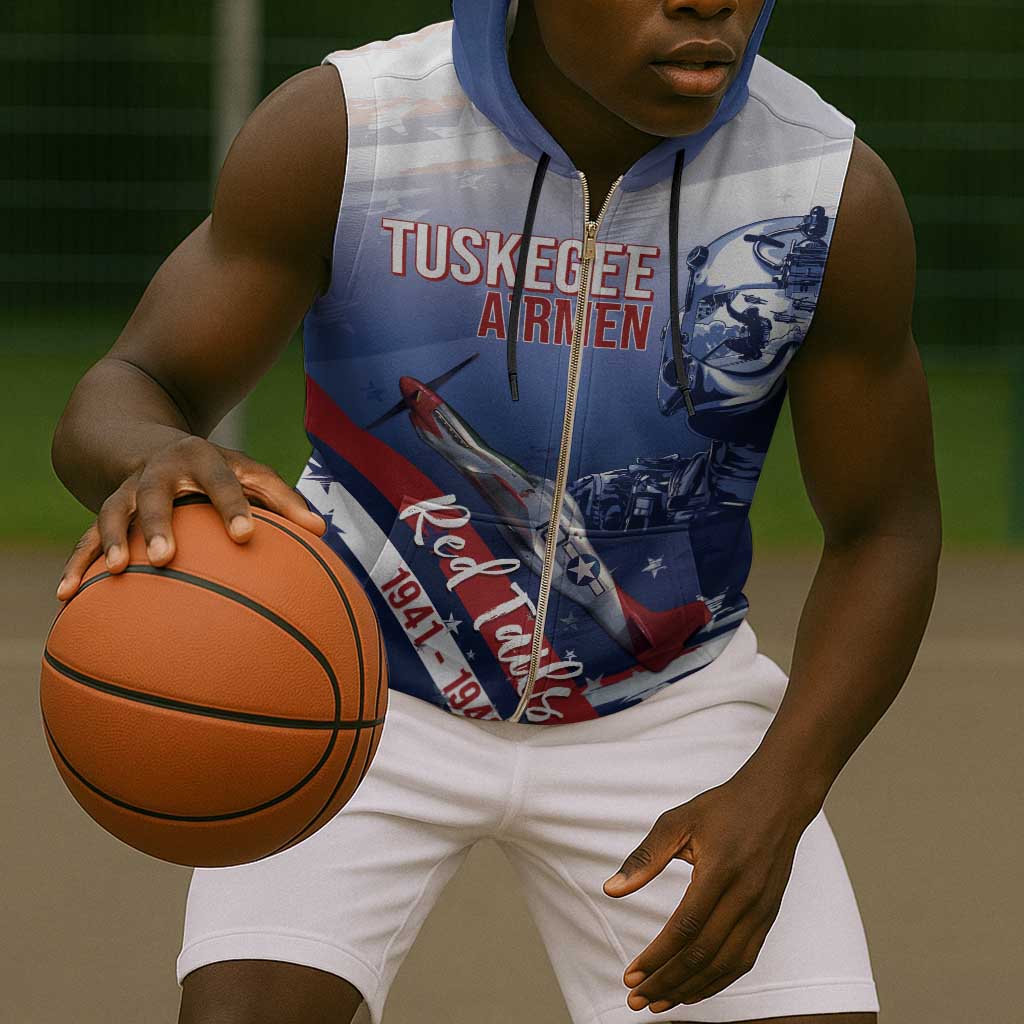 Tuskegee Airmen Red Tails Sleeveless Zip Hoodie Straighten Up and Fly Right - Blue White