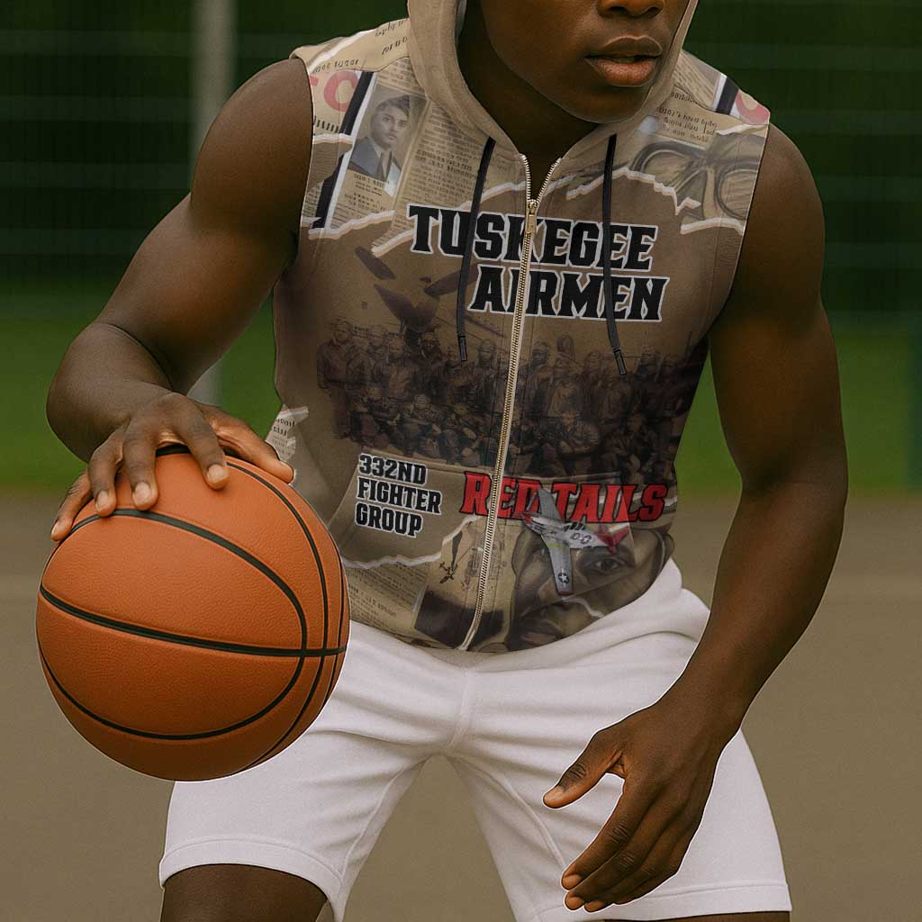 Tuskegee Airmen Red Tails Tribute Sleeveless Zip Hoodie Black History Air Force