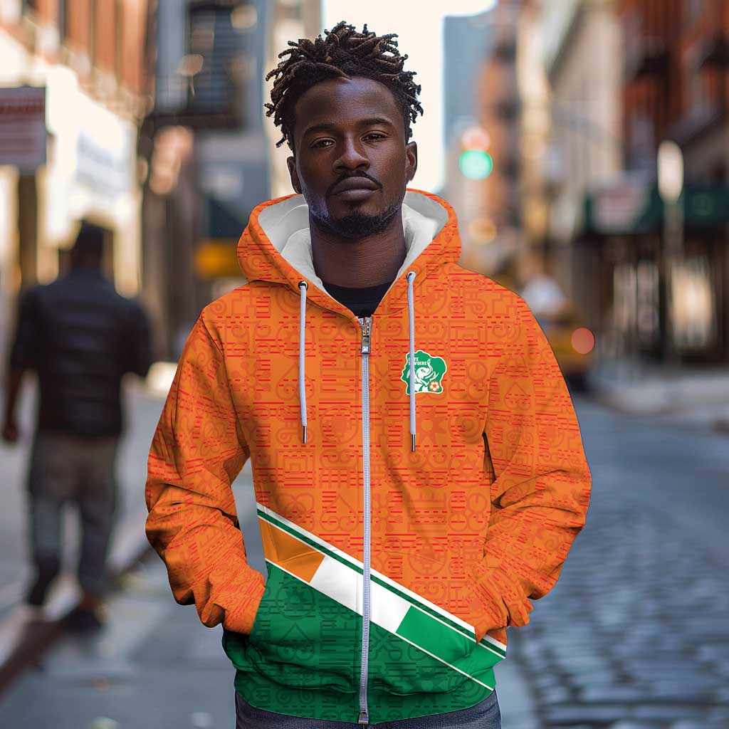 World Football 2026 Ivory Coast Custom Zip Hoodie African Adinkra Pattern