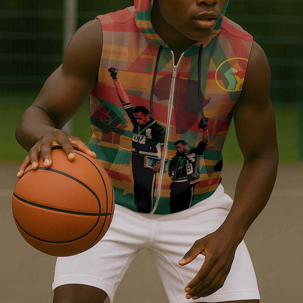 African American 1968 Sleeveless Zip Hoodie Black Power Fists of Freedom