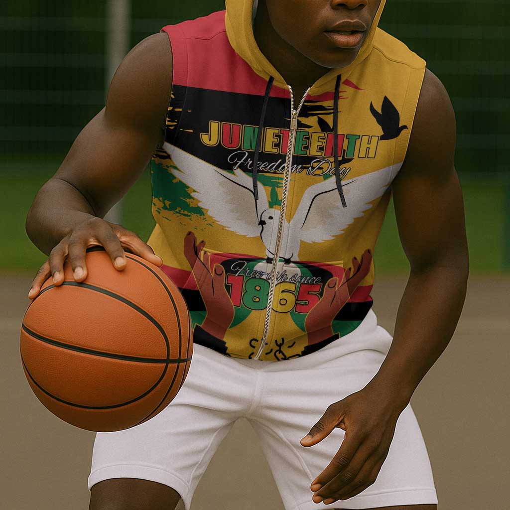 African American Juneteenth 1865 Sleeveless Zip Hoodie Black Freedom