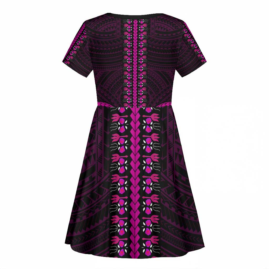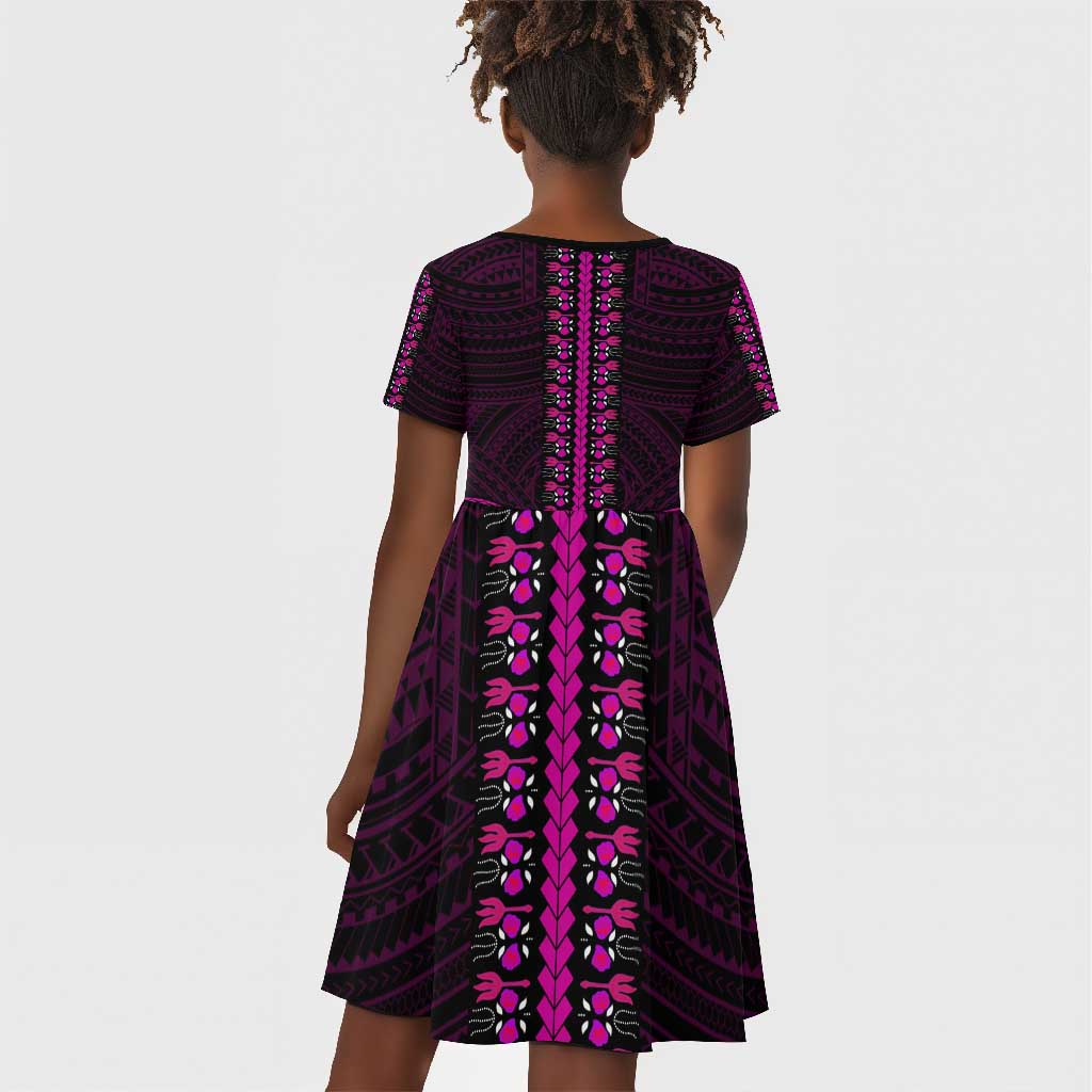 African Dashiki and Polynesian Pattern Kid Short Sleeve Dress Pink