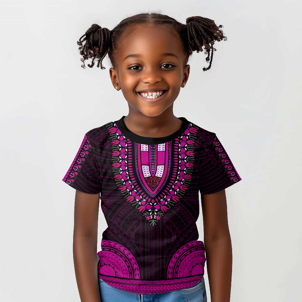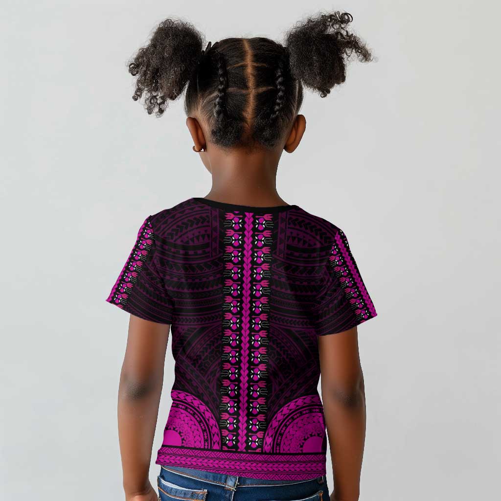 African Dashiki and Polynesian Pattern Kid T shirt Pink