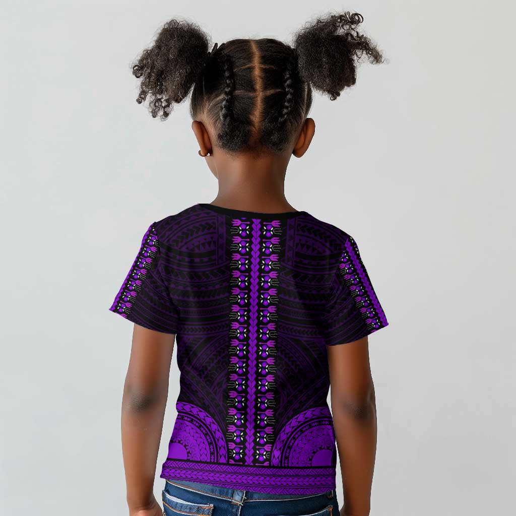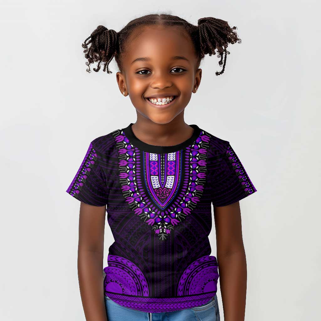 African Dashiki and Polynesian Pattern Kid T shirt Purple