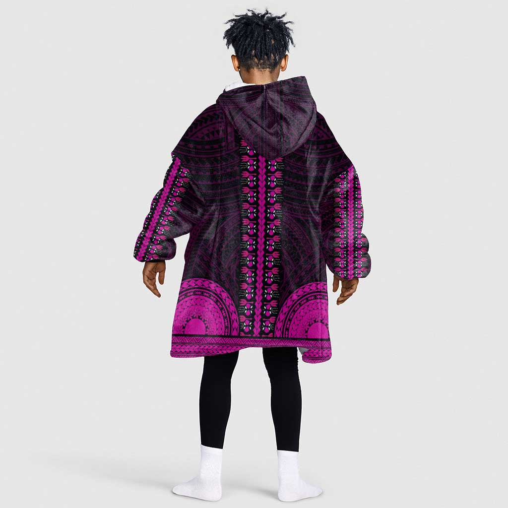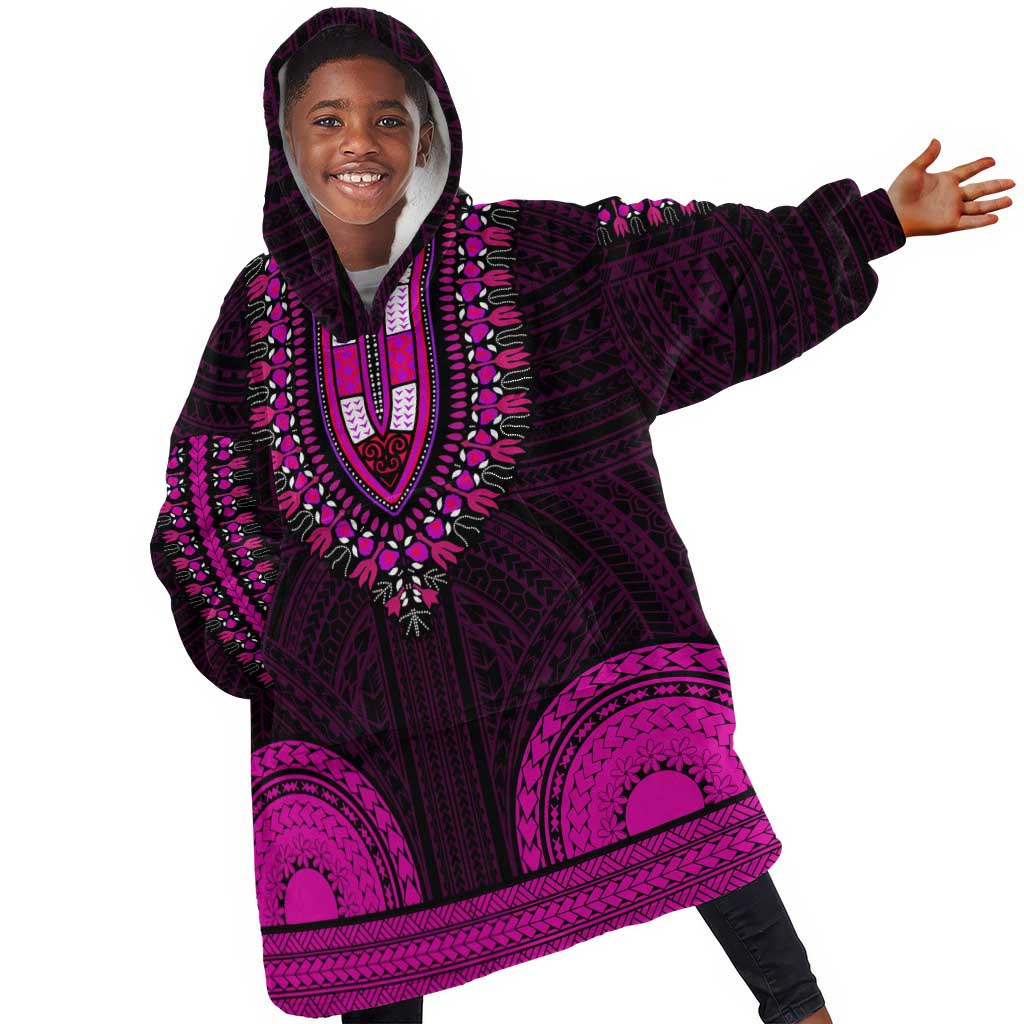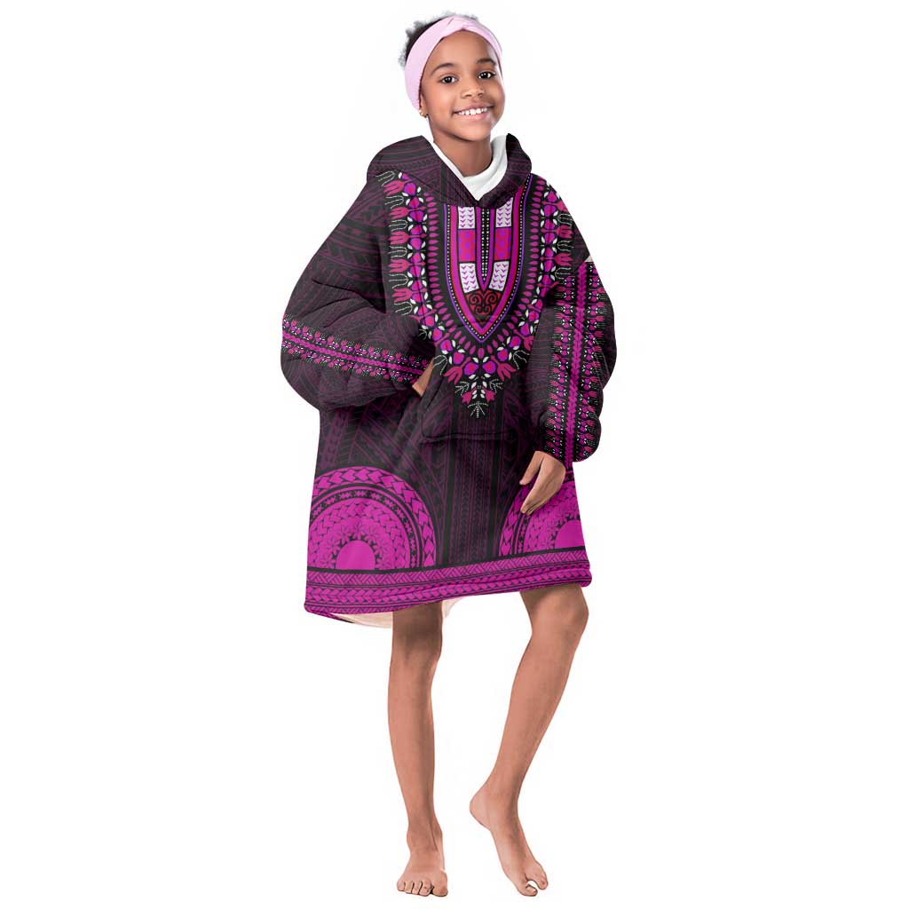 African Dashiki and Polynesian Pattern Kid Wearable Blanket Hoodie Pink