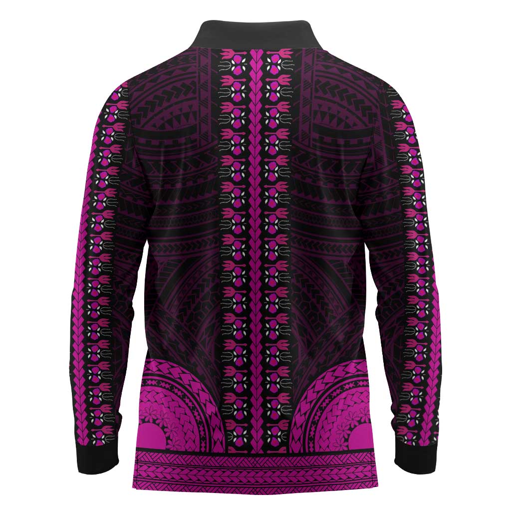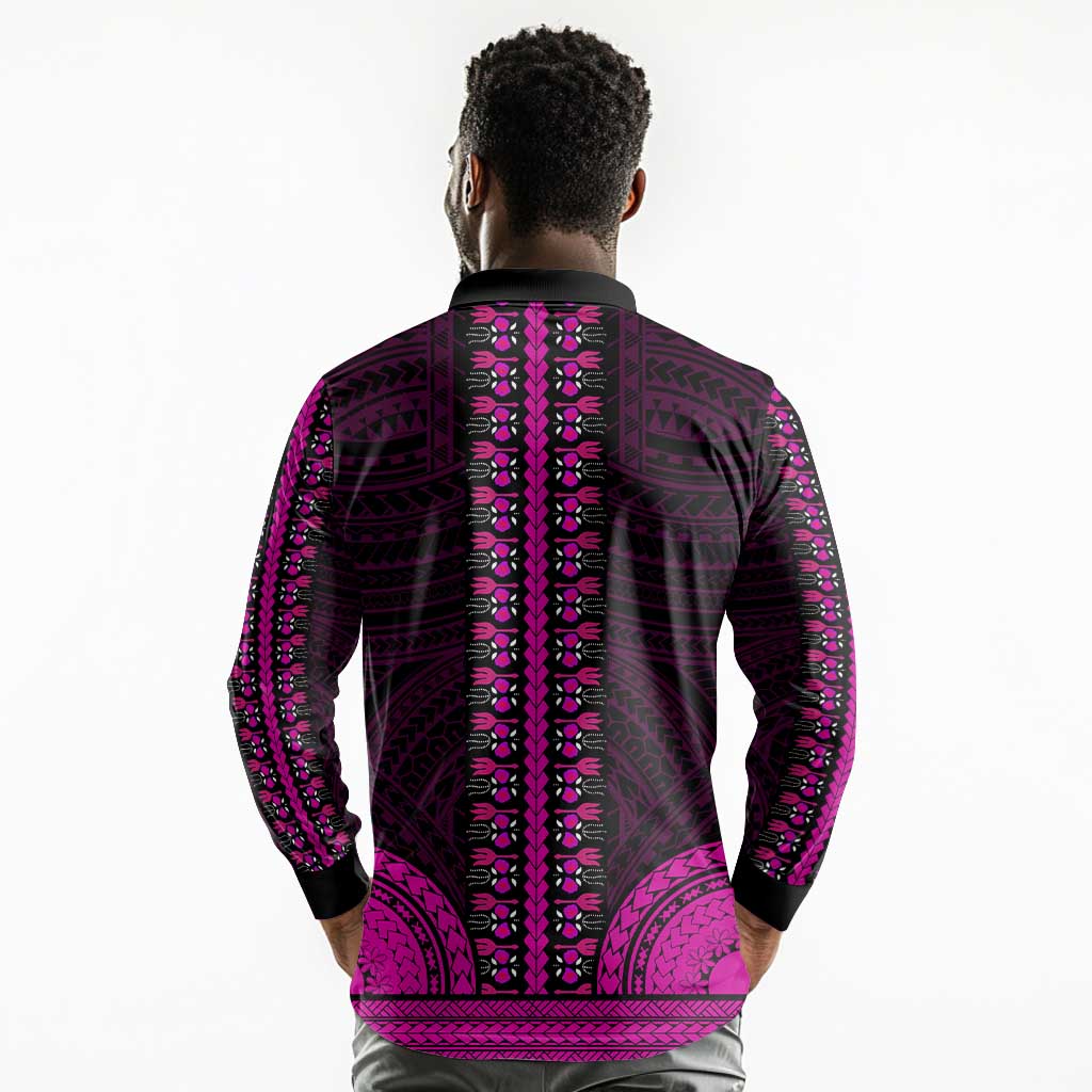 African Dashiki and Polynesian Pattern Long Sleeve Polo Shirt Pink