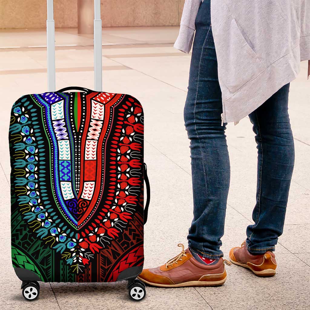 African Dashiki and Polynesian Pattern Luggage Cover Half Green-Red