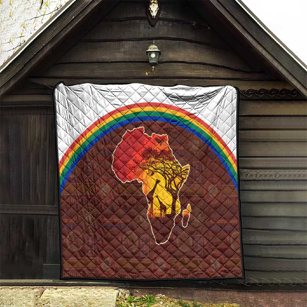 African Sunset Quilt Tribal Pattern Continent Silhouette - Rainbow Arc Safari Scene