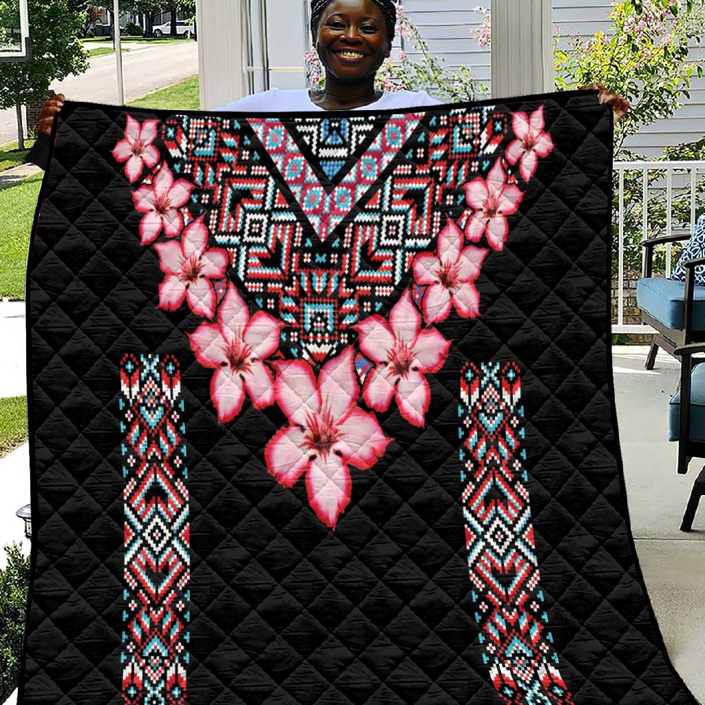 Afro Adenium Multiflorum Flowers Quilt Mix Native Tribal Pattern