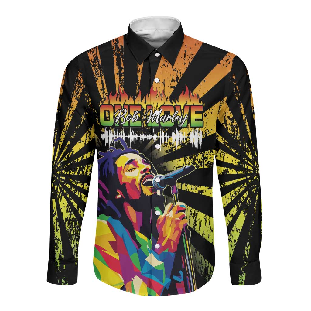 Afro-American Reggae Legend Bob Long Sleeve Button Shirt One Love - Grunge Style
