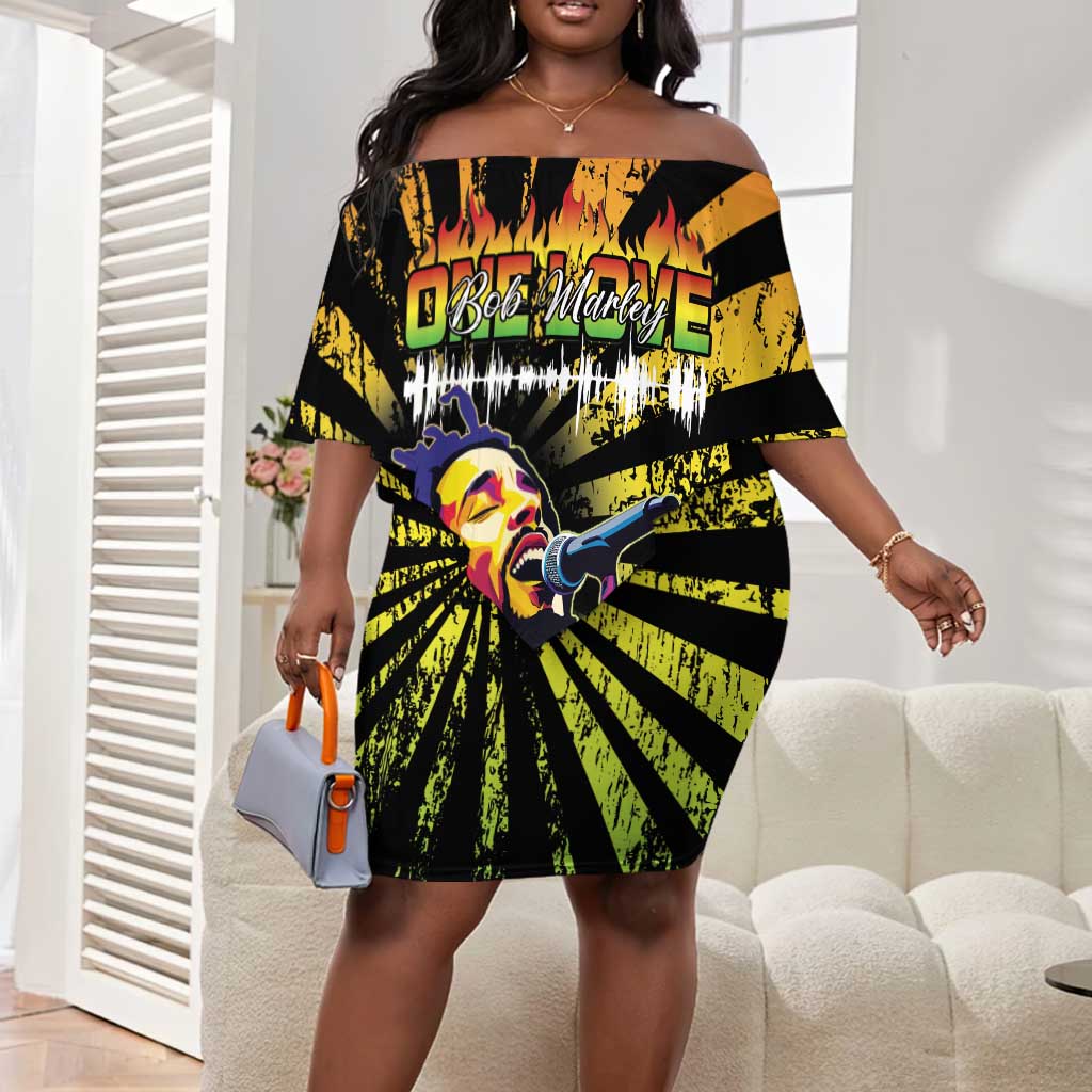 Afro-American Reggae Legend Bob Off Shoulder Short Dress One Love - Grunge Style