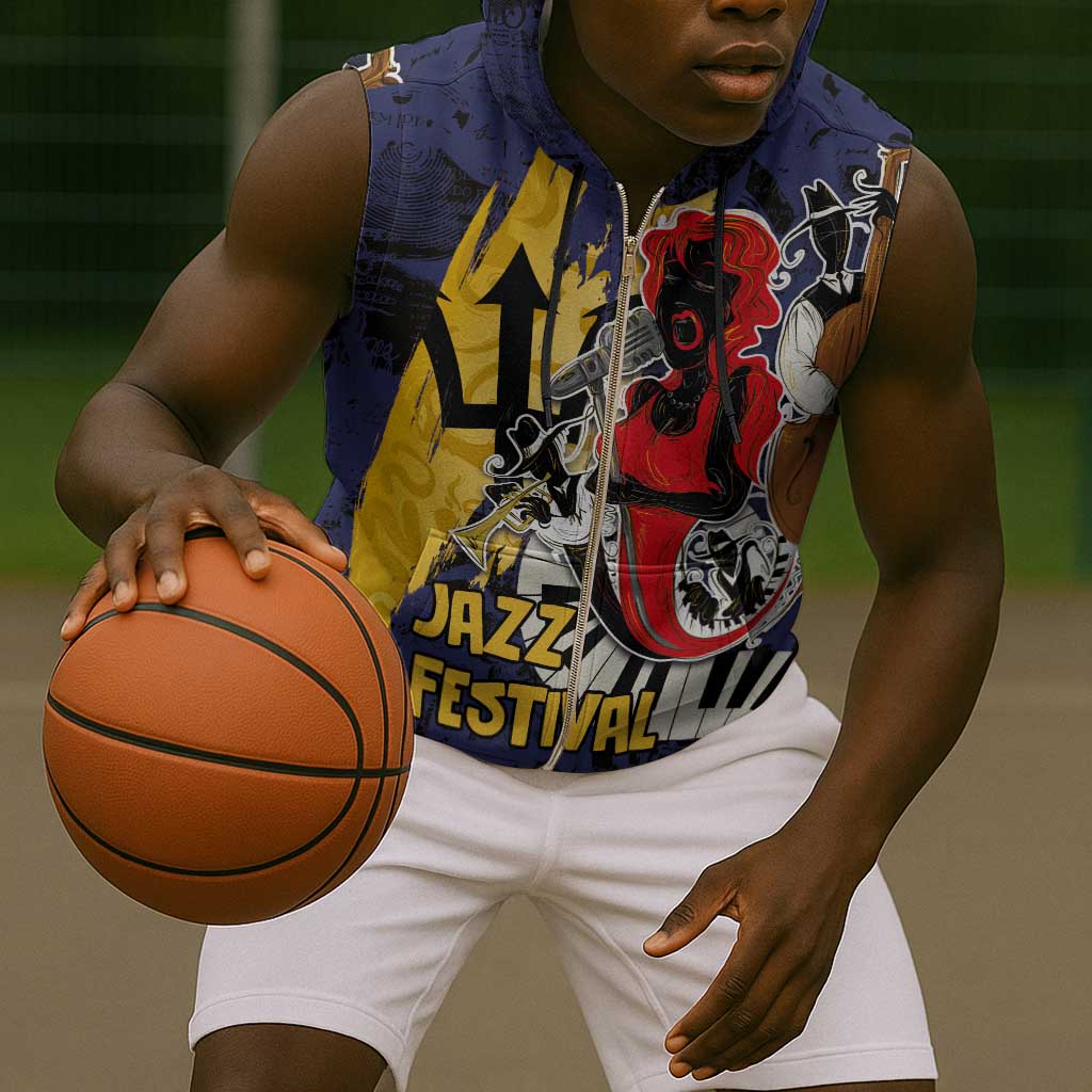 Afro-Barbados Jazz Festival Sleeveless Zip Hoodie Abstract Jazz Art