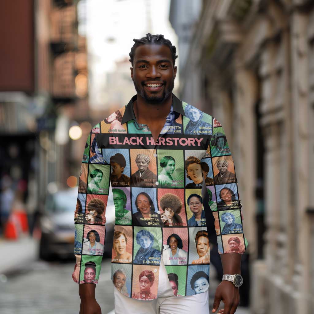 Afro Black Herstory Long Sleeve Button Shirt African Women History