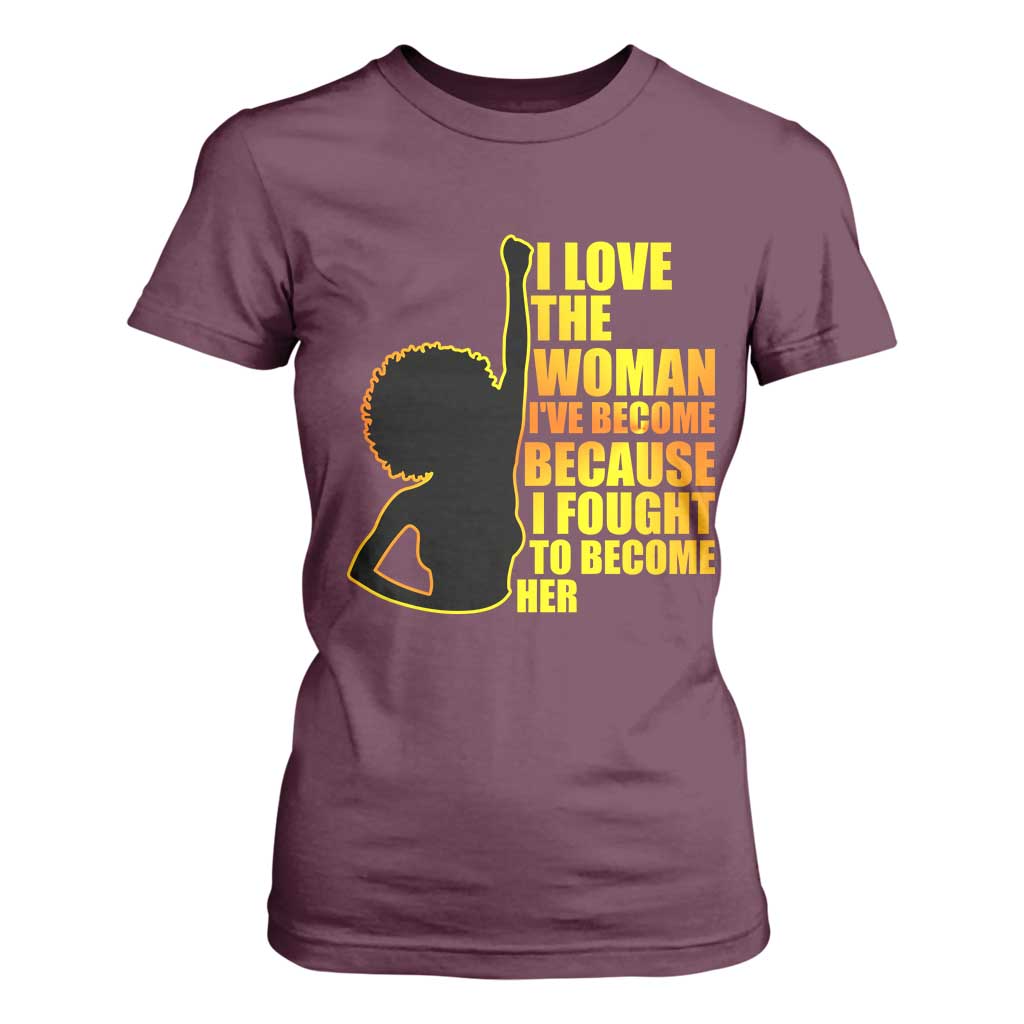 Afro Black Pride T Shirt For Women I Love The Woman I've Become Melanin Silhouette