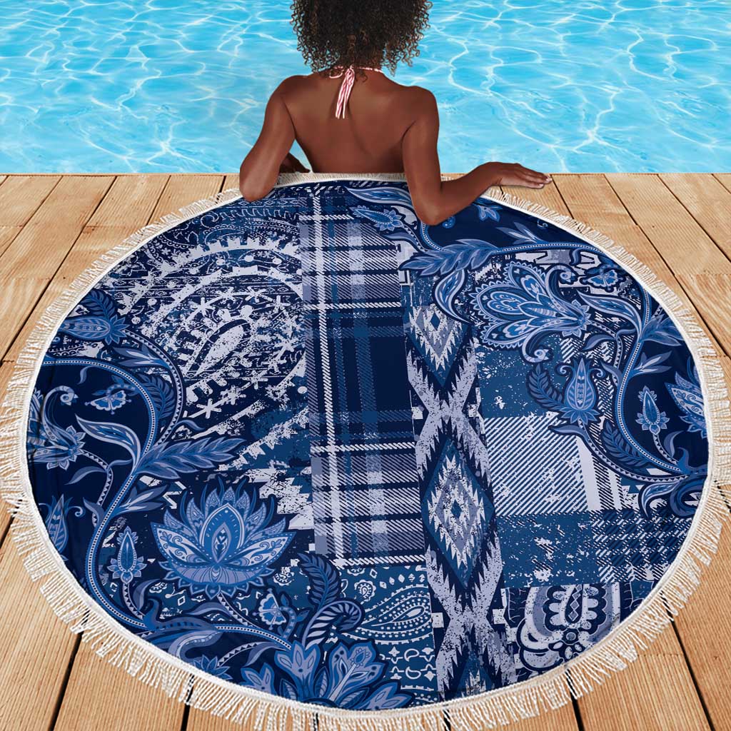 Afro Floral mix Maasai Shuka Beach Blanket Blue Moitf