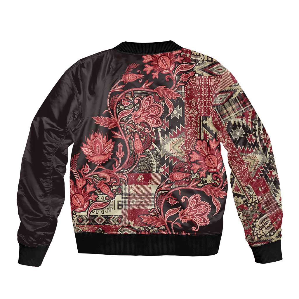 Afro Floral mix Maasai Shuka Bomber Jacket Red Moitf