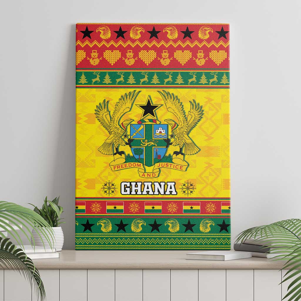 Afro Ghana Christmas Canvas Wall Art Coat Of Arms - Kente Pattern