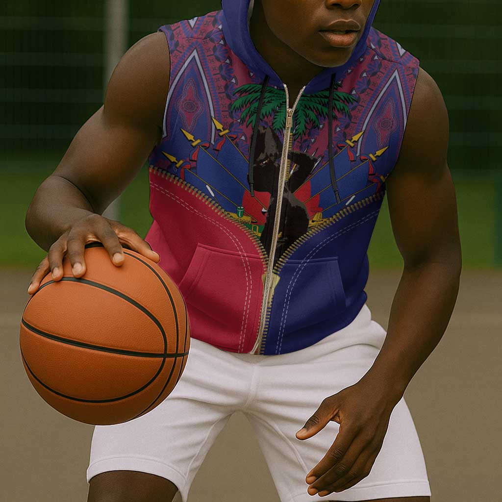 Afro Haiti Heritage Month Sleeveless Zip Hoodie Zipper Stylized