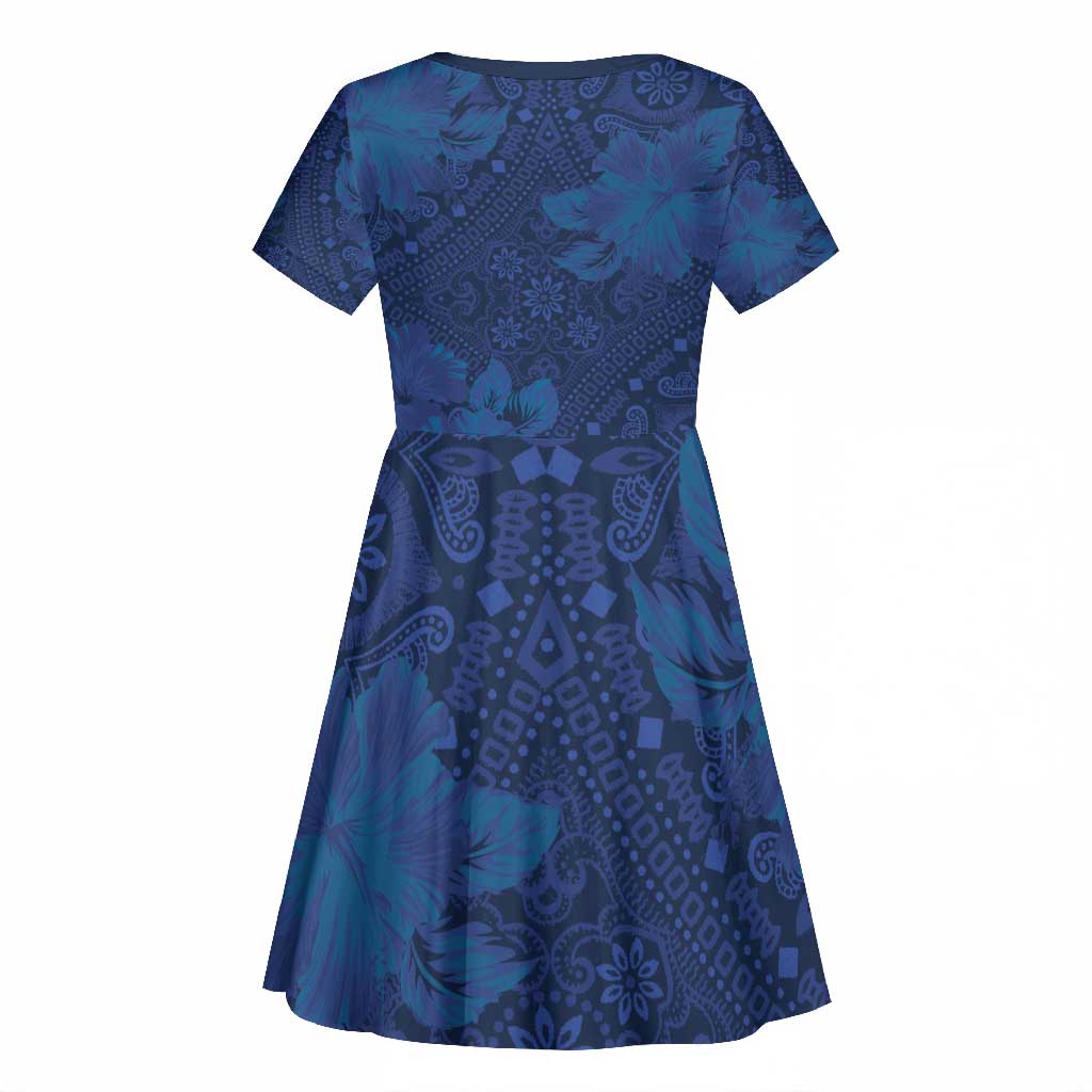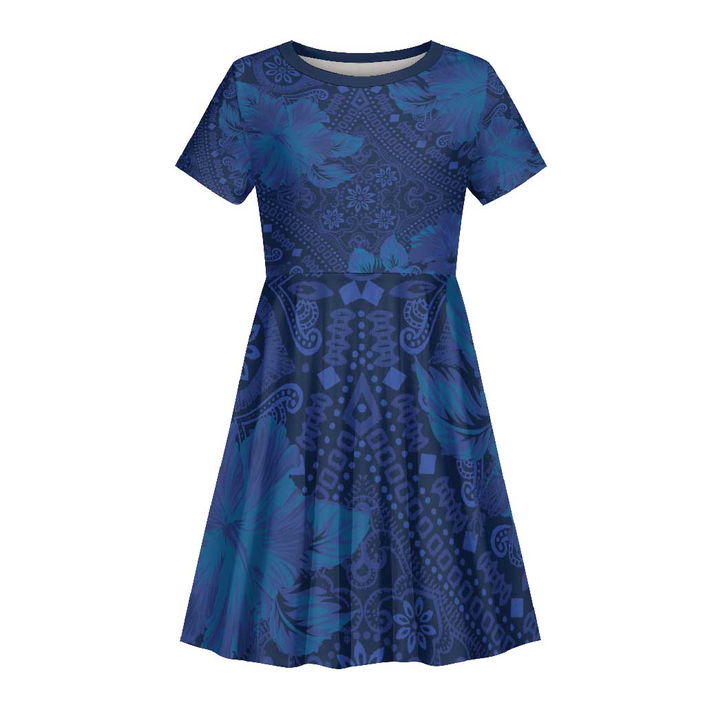 Afro Hibiscus Tropical Kid Short Sleeve Dress ShweShwe African Pattern
