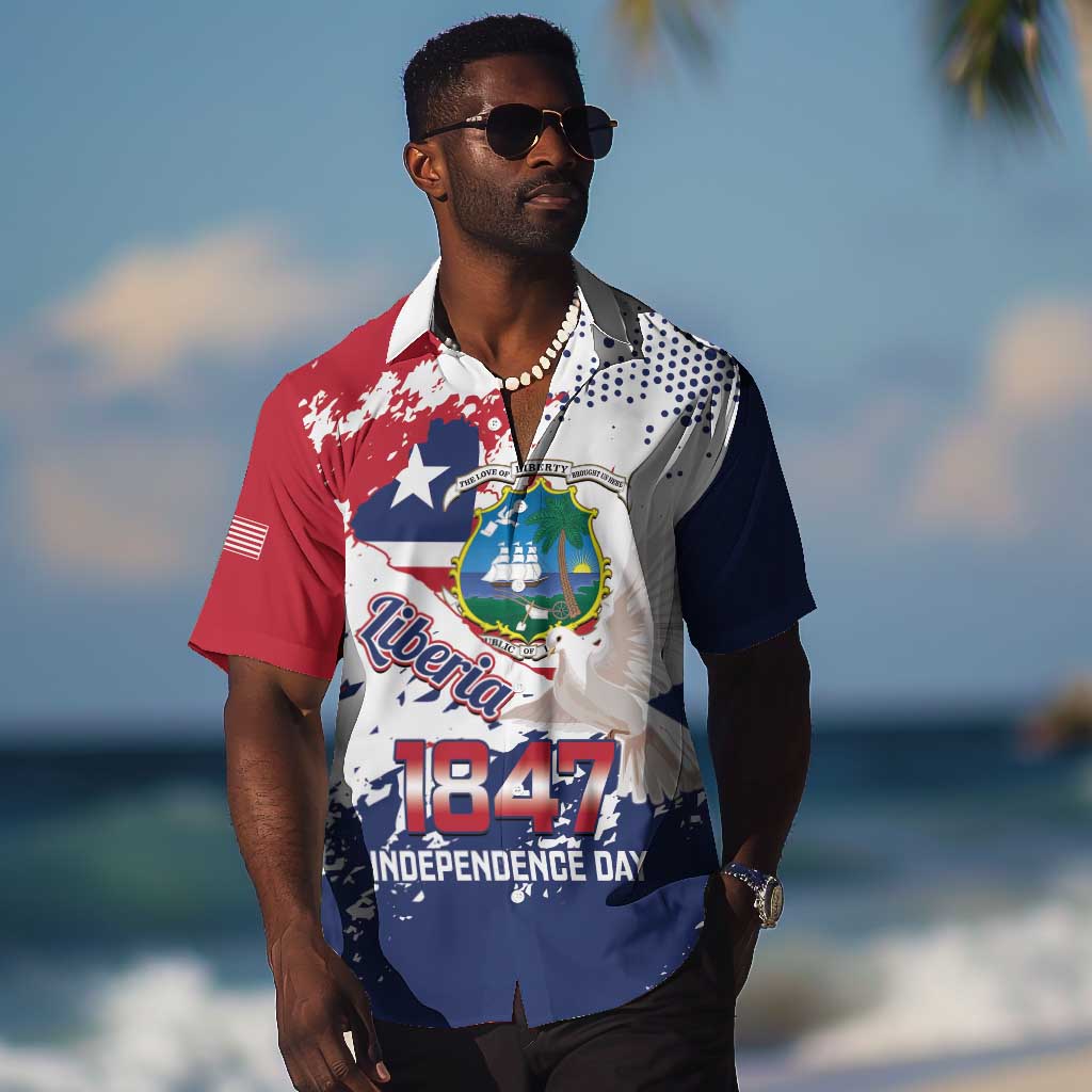 Afro Liberia 1847 Independence Day Hawaiian Shirt Coat Of Arms Grunge Style