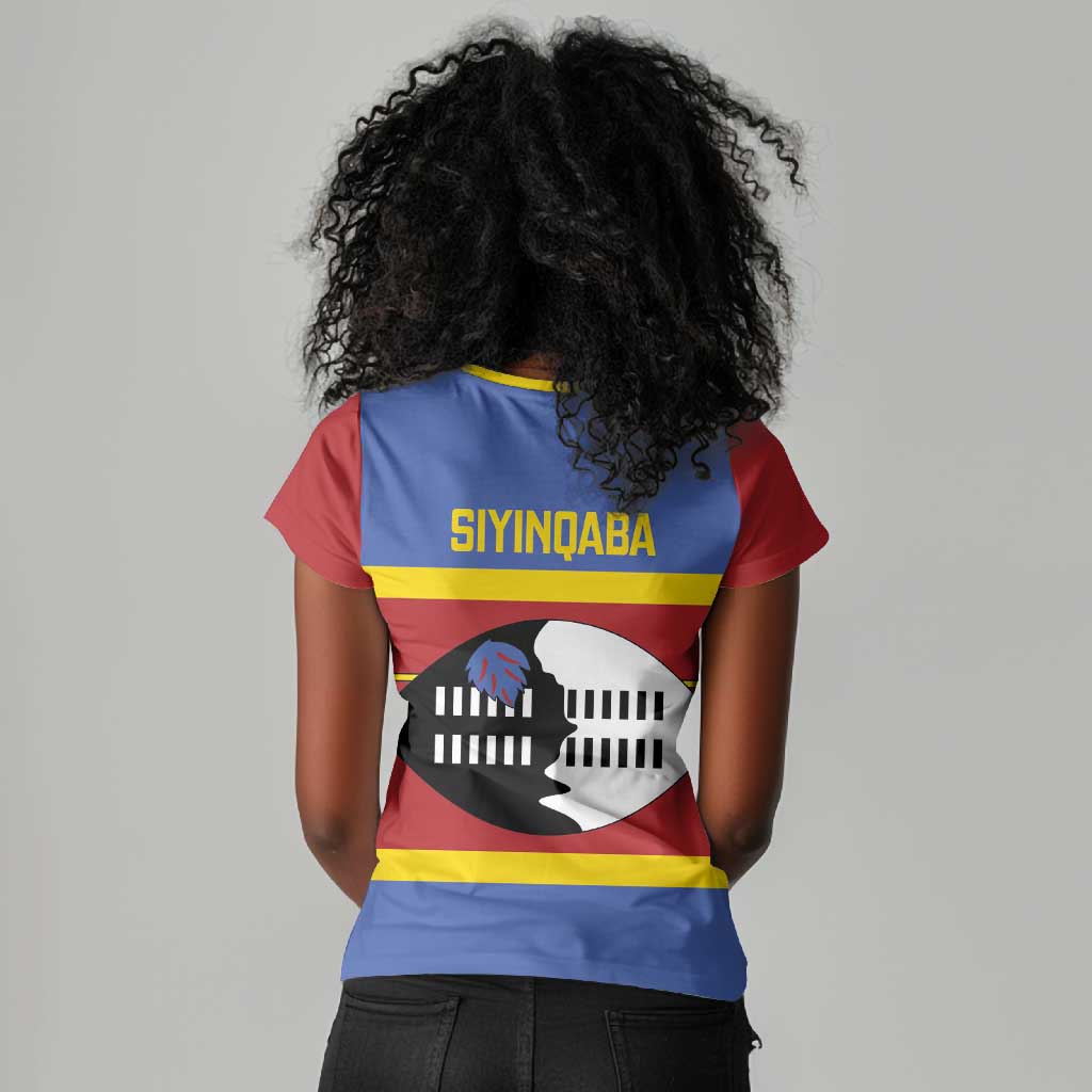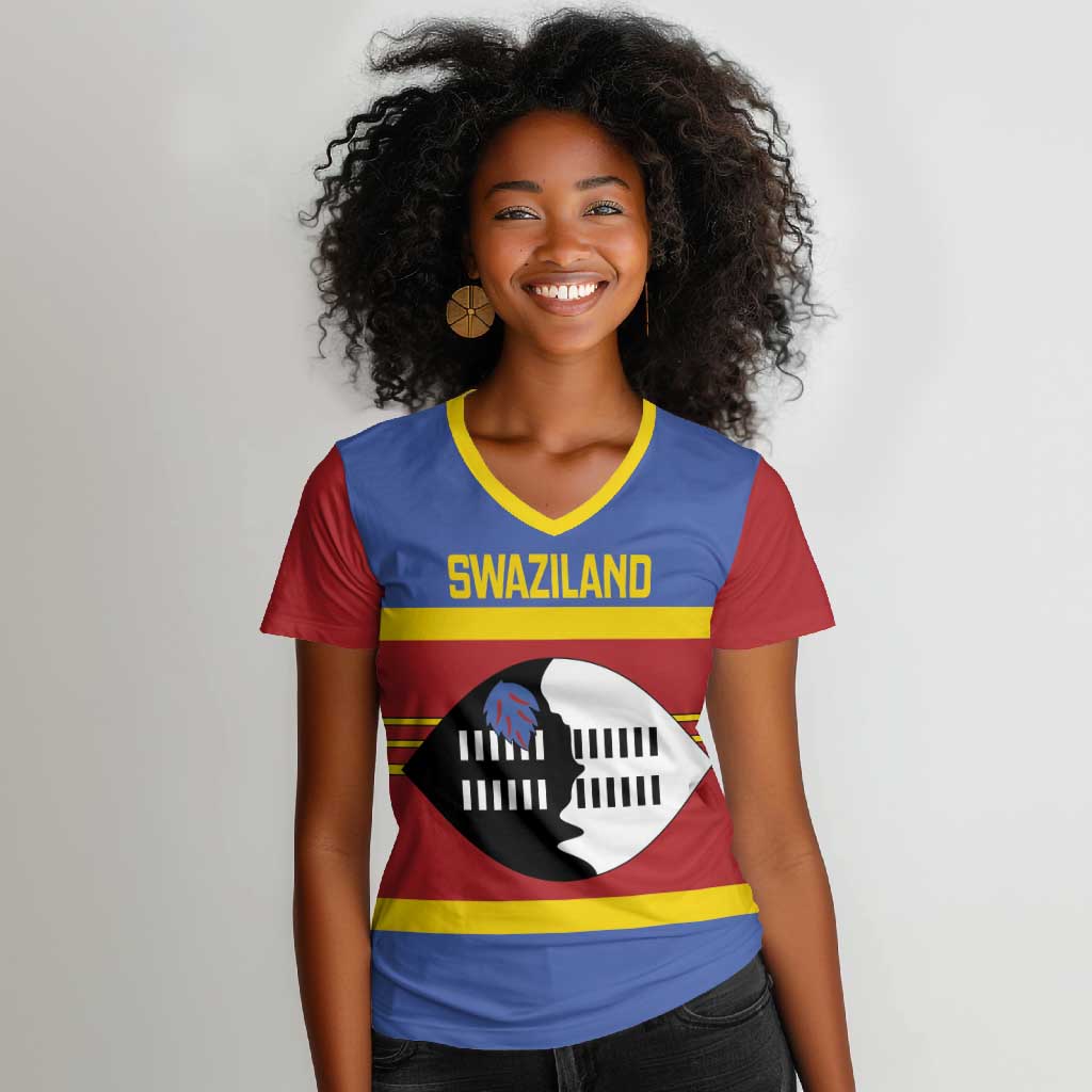 Afro Swaziland Women V-Neck T-Shirt Siyinqaba Eswatini Flag Style