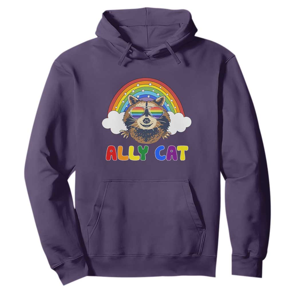 Ally Street Cat Rainbow Raccoon Hoodie Funny LGBTQ+ Pride Support