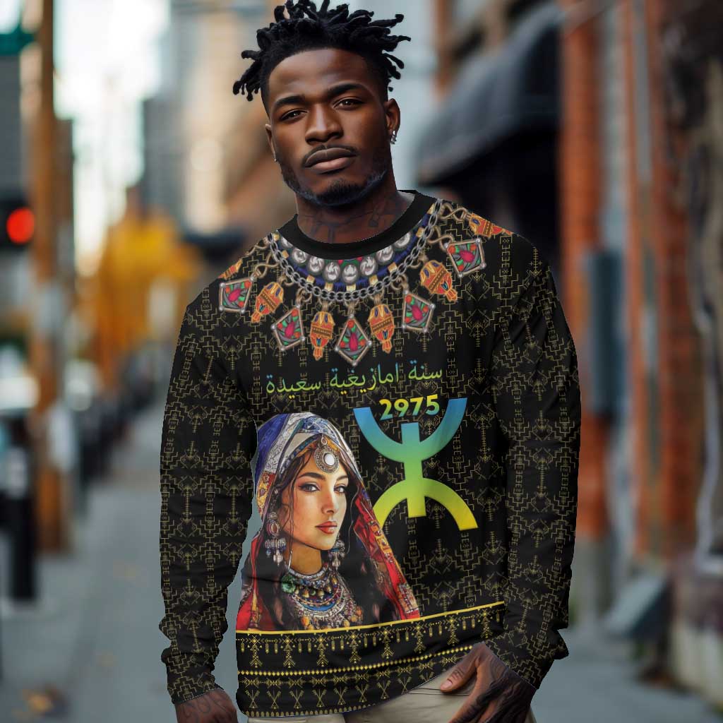 Assegwas Ameggaz Yennayer Long Sleeve Shirt Women Amazigh - Berber Pattern