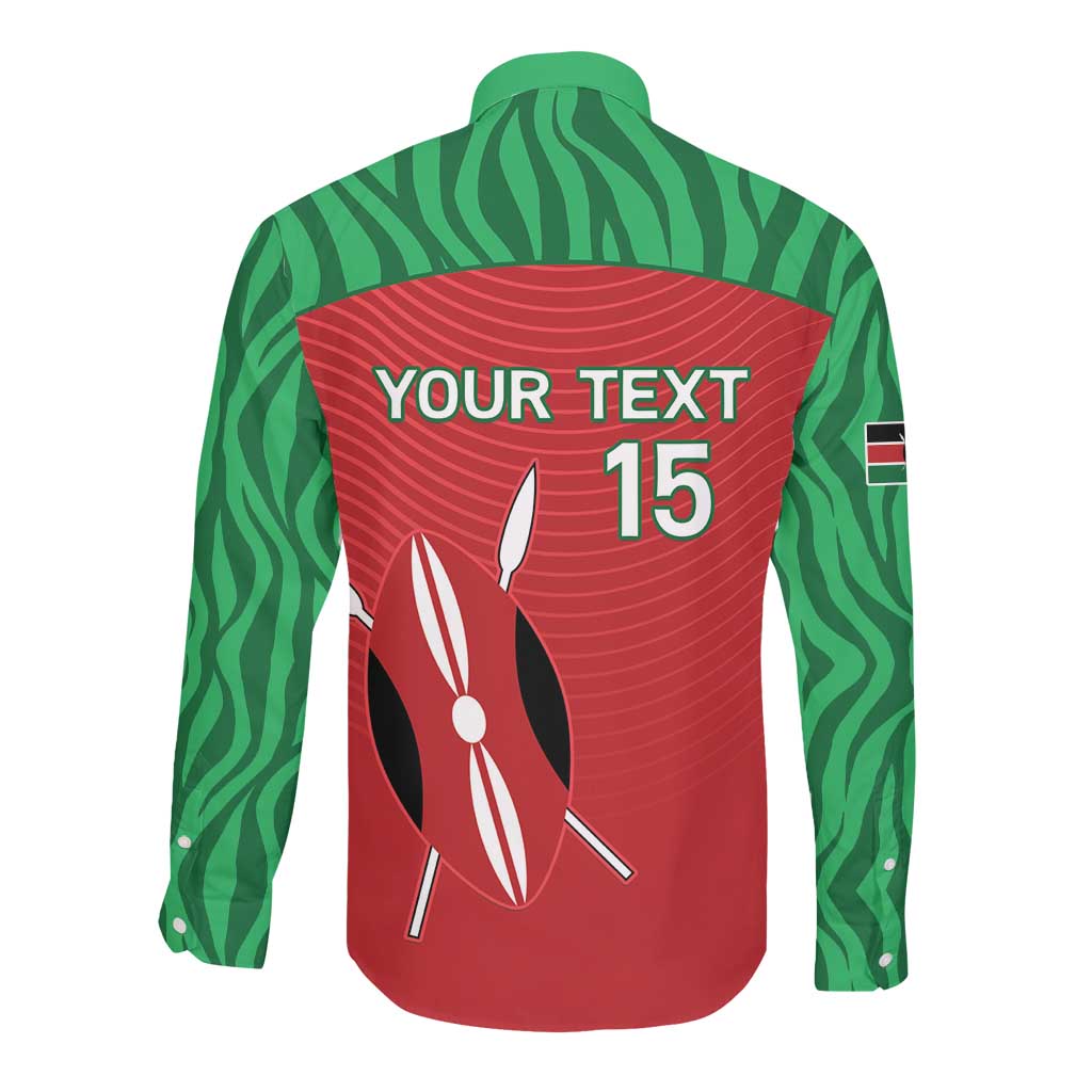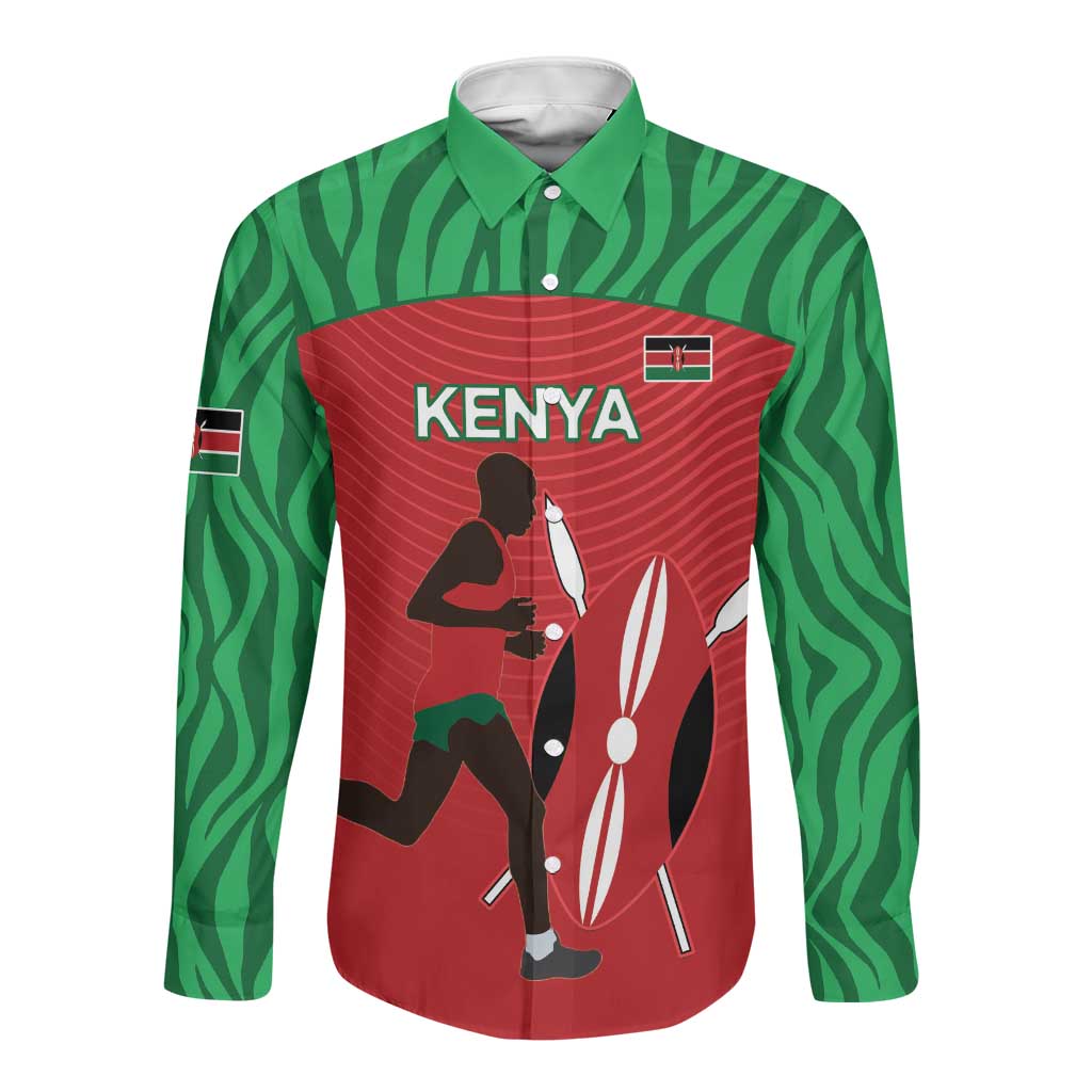 Custom Afro Athletics Kenya Long Sleeve Button Shirt Kenyan Runner - Maasai Shield