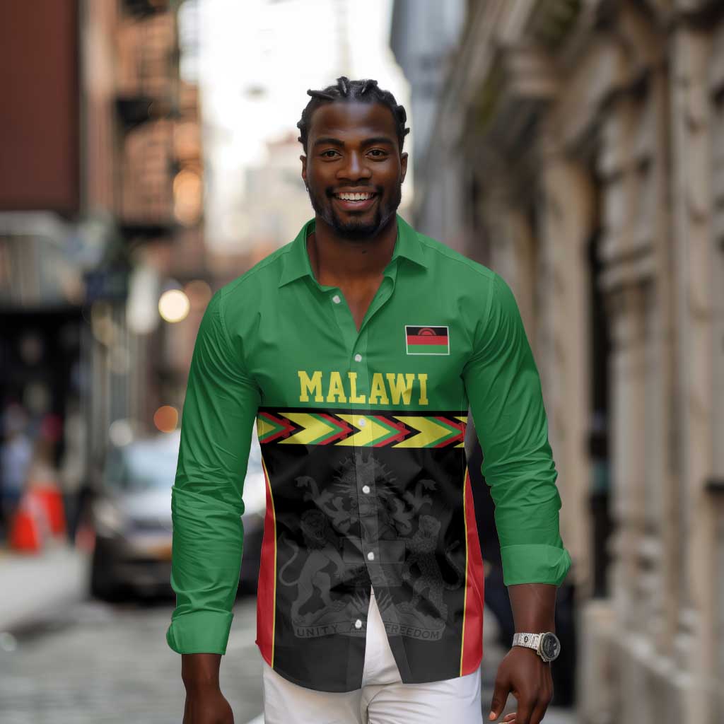 Custom Cricket Africa Malawi Long Sleeve Button Shirt Malawi Chevron Pattern