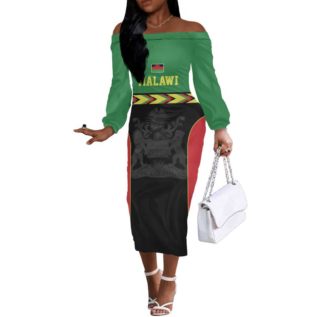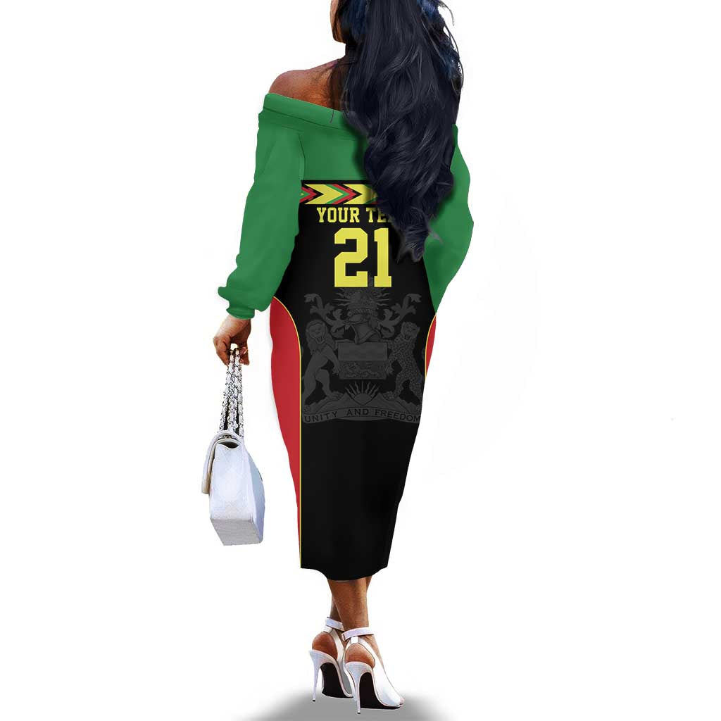 Custom Cricket Africa Malawi Off The Shoulder Long Sleeve Dress Malawi Chevron Pattern