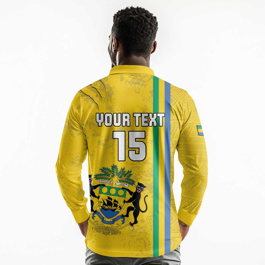 Custom Gabon Football Long Sleeve Polo Shirt Go Champions - Yellow Ver