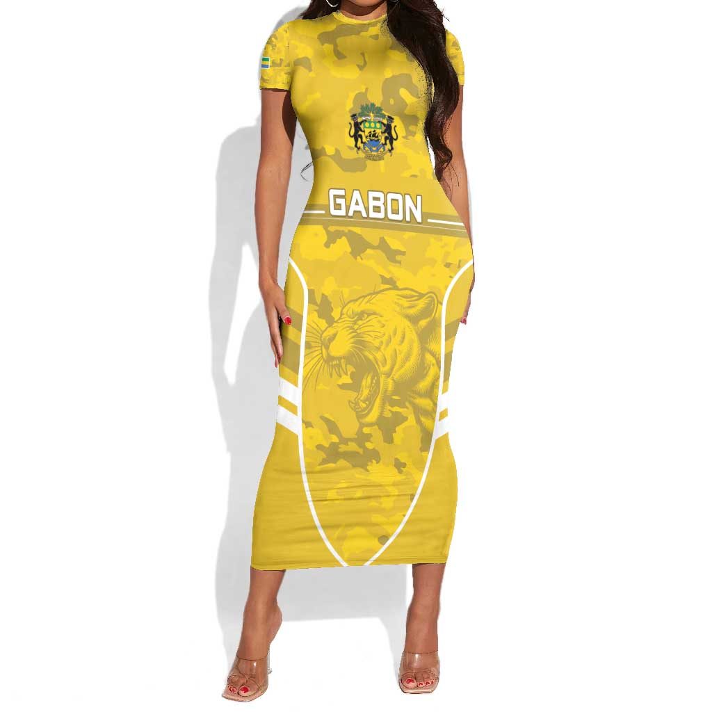 Custom Gabon Football Short Sleeve Bodycon Dress Go Les Pantheres