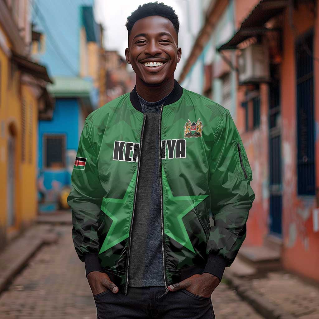Custom Kenya Football Sleeve Zip Bomber Jacket Harambee Harambee Stars - Green Jersey