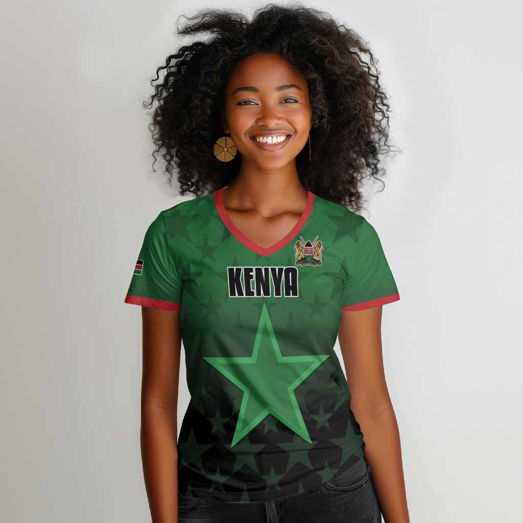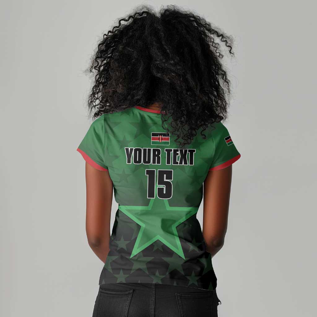 Custom Kenya Football Women V-Neck T-Shirt Harambee Harambee Stars - Green Jersey