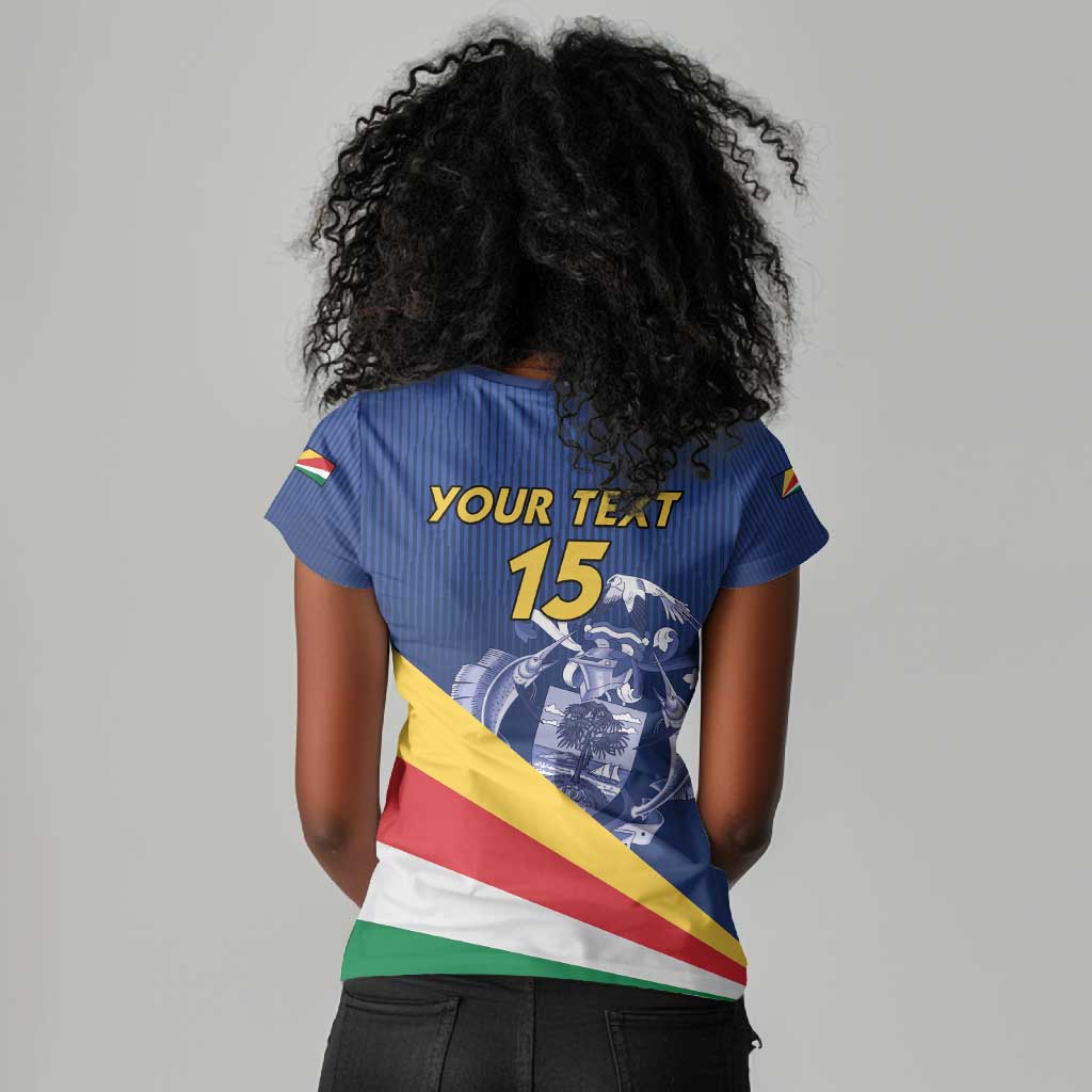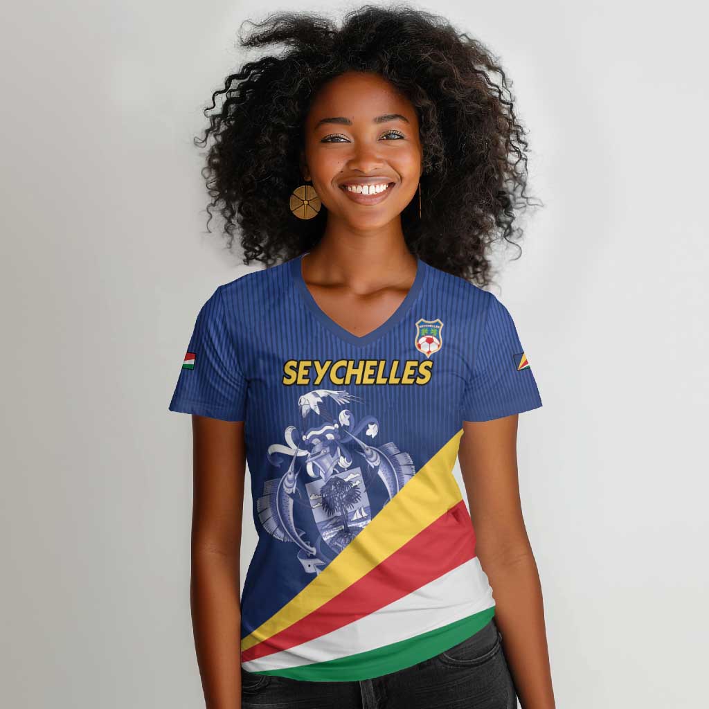 Custom Seychelles Beach Soccer 2025 Women V-Neck T-Shirt Go Champions Sesel