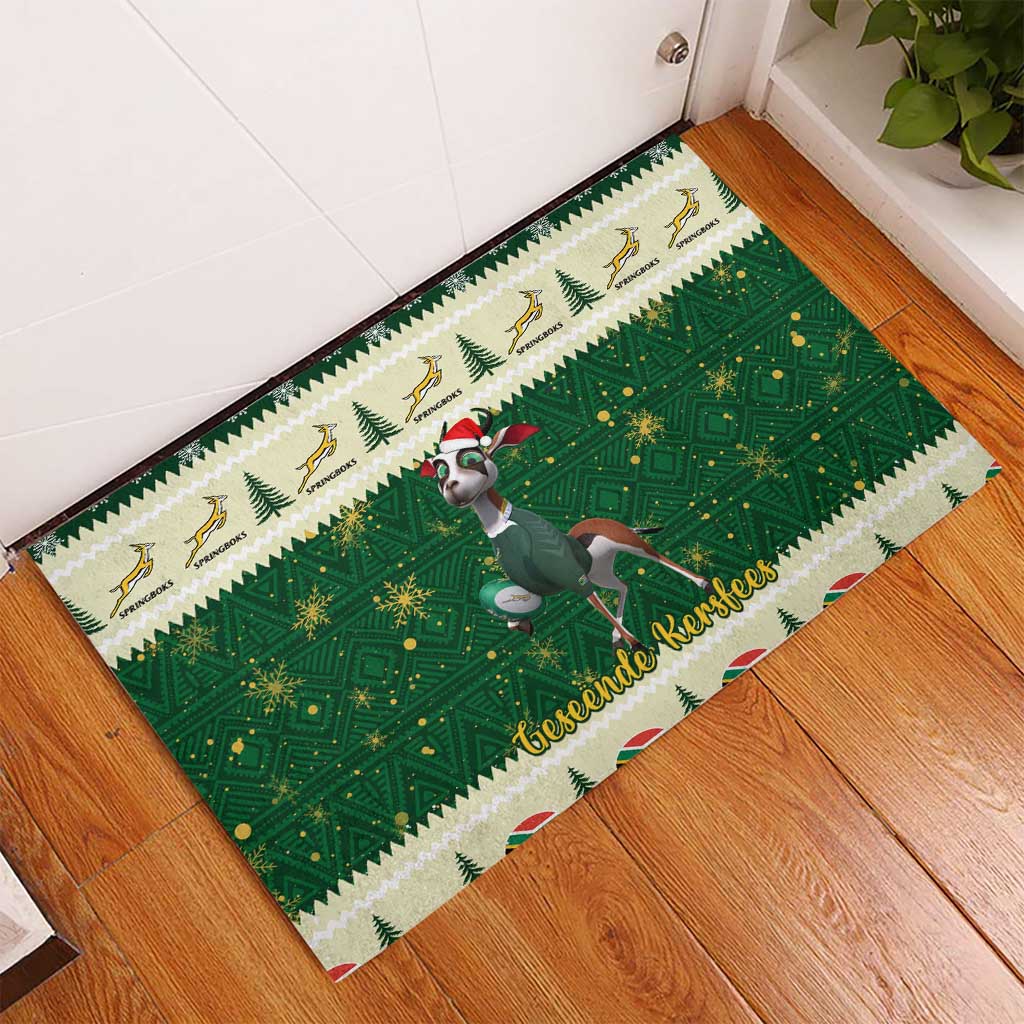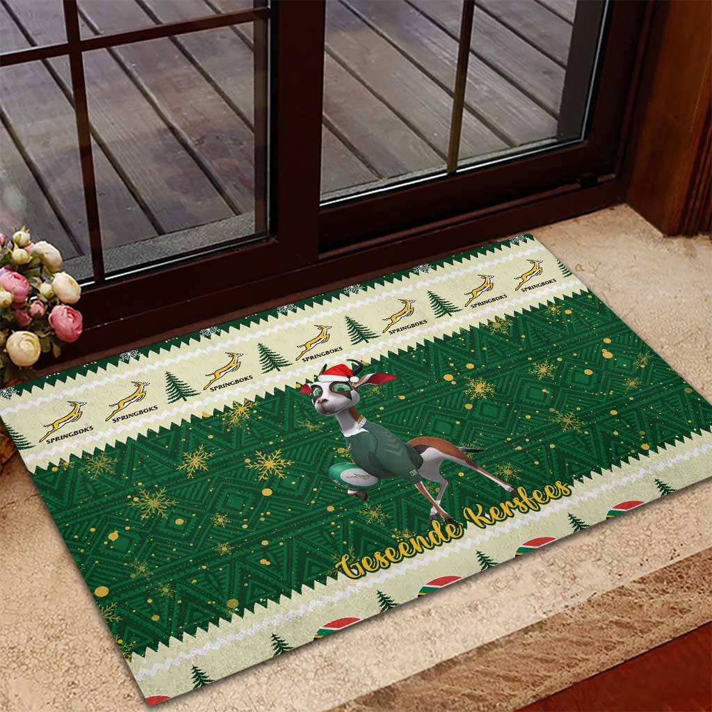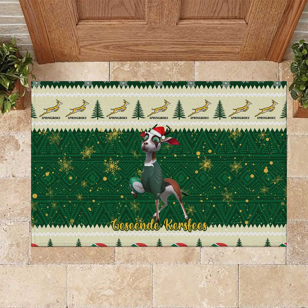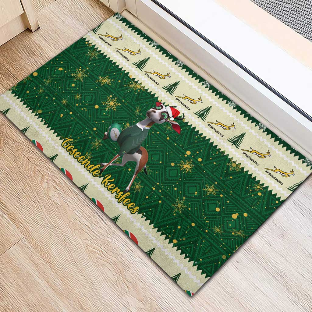 Custom South Africa Rugby Christmas Rubber Doormat Geseende Kersfees Springboks African Pattern