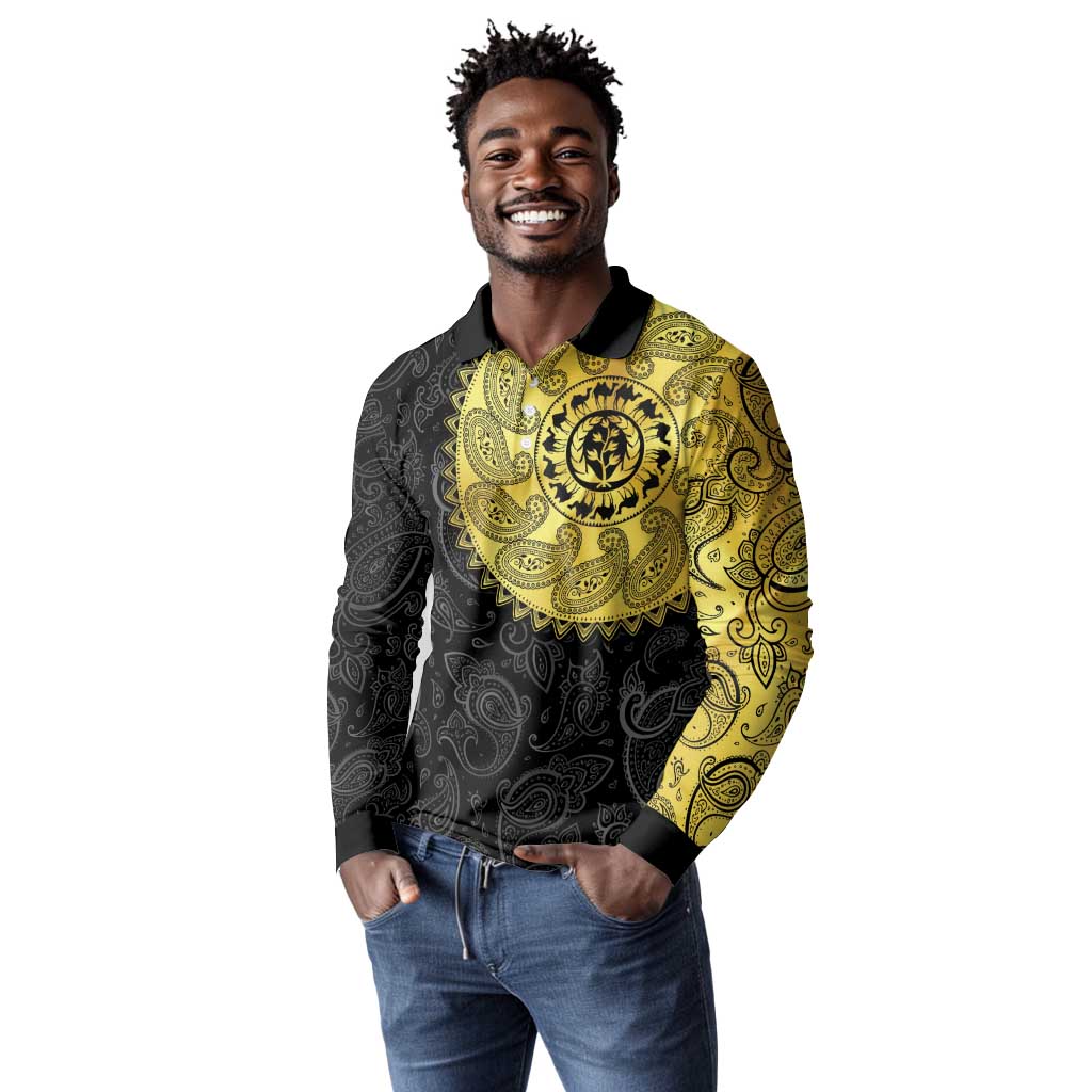 Eritrea African Tribal Mix Paisley Pattern Long Sleeve Polo Shirt Chest Arm Tattoo