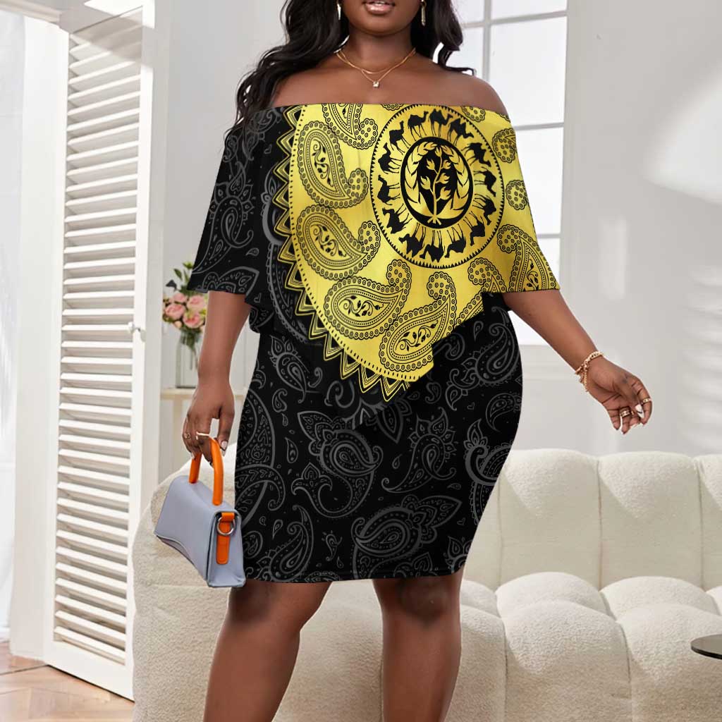 Eritrea African Tribal Mix Paisley Pattern Off Shoulder Short Dress Chest Arm Tattoo