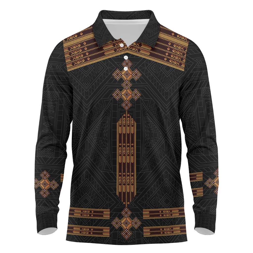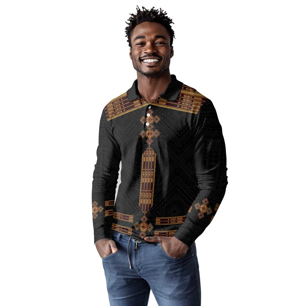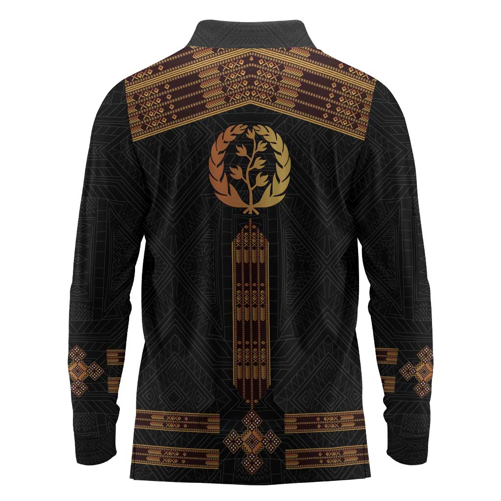 Eritrea Long Sleeve Polo Shirt Tilet Habesha Style - Black