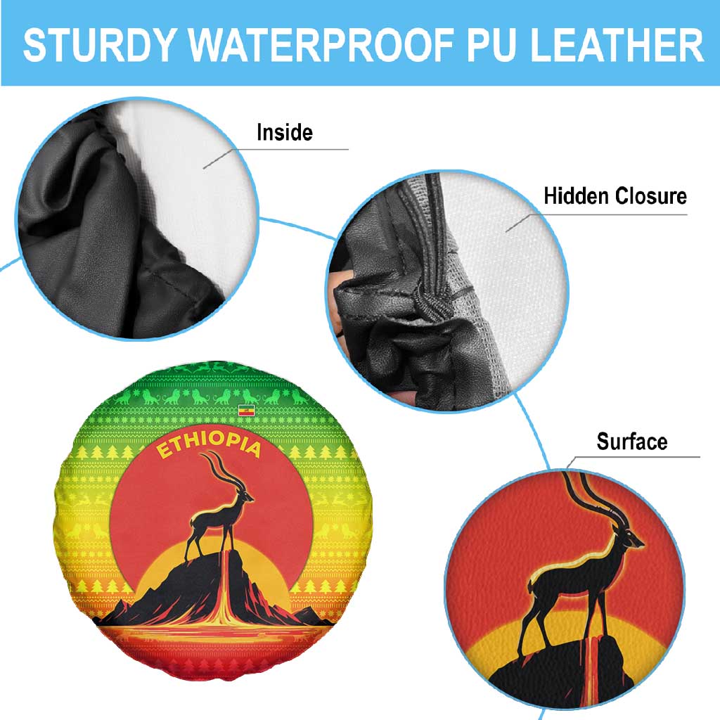 Ethiopia Christmas Spare Tire Cover Mountain Gazelle Sunset Ethiopian Flag