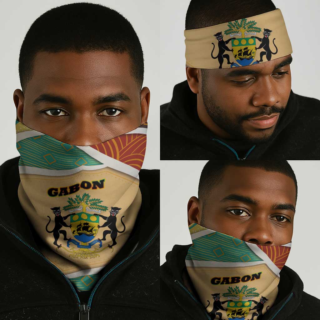 Gabon Neck Gaiter - National Coat of Arms and Tribal Pattern Map Design in Bold Colors