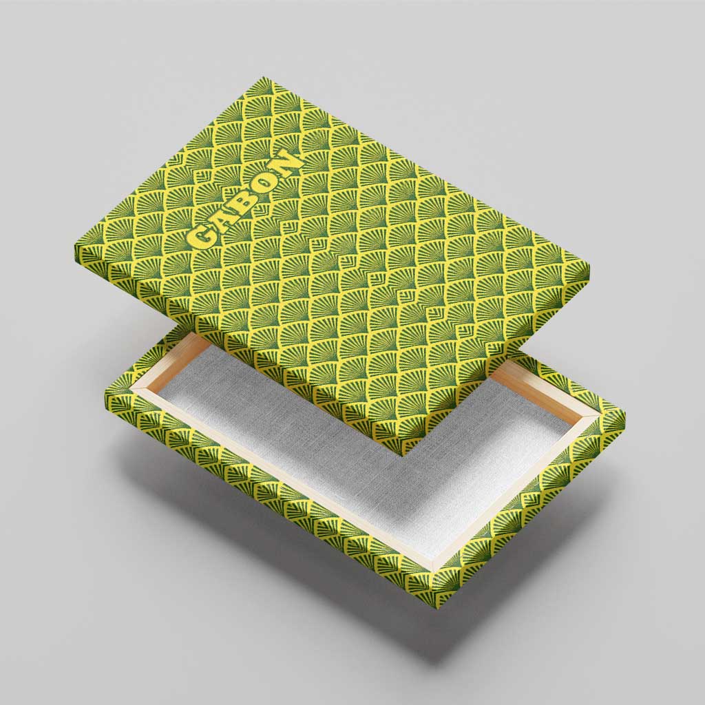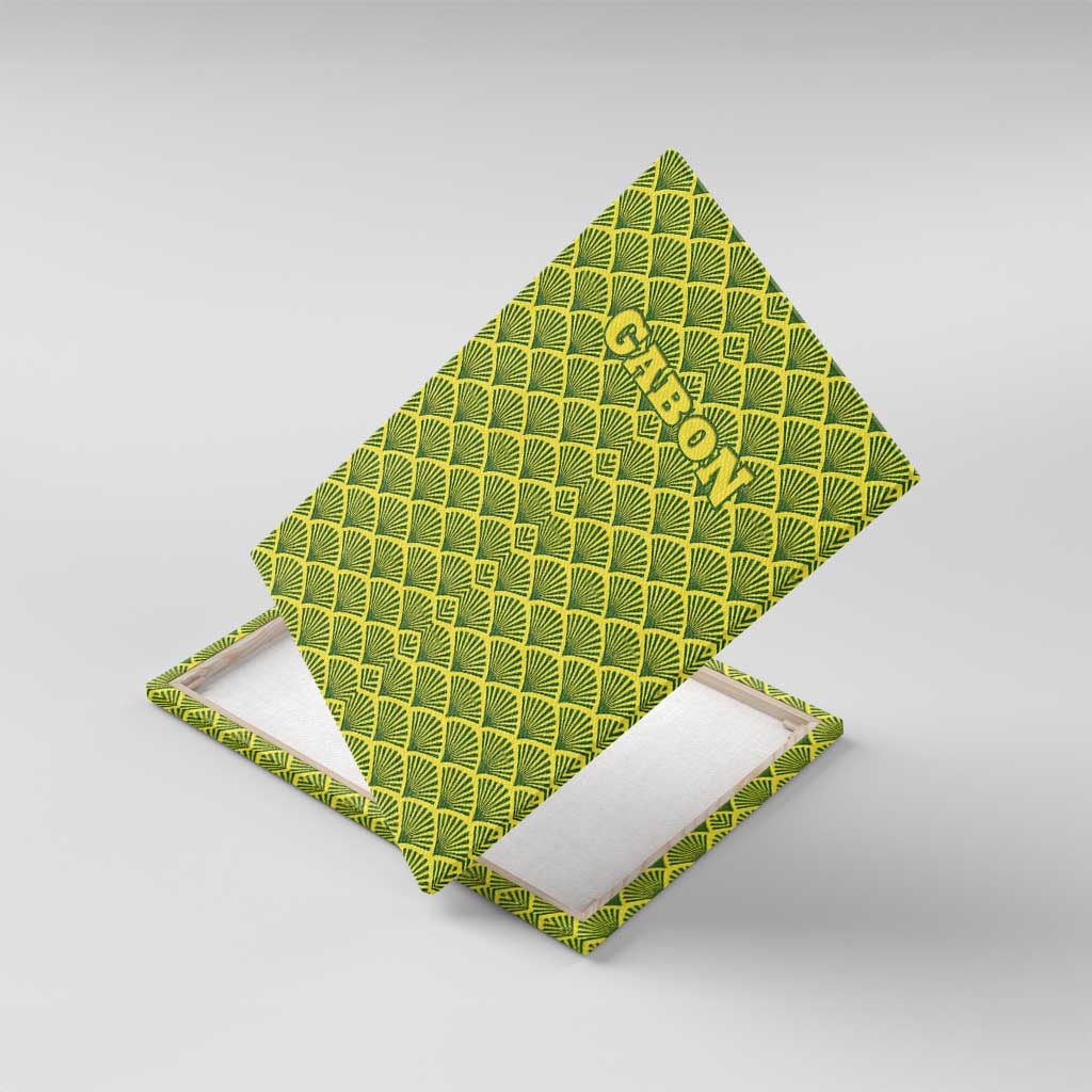 Gabon Tribal Pattern Canvas Wall Art - National Flag Colors and Bold Text Design